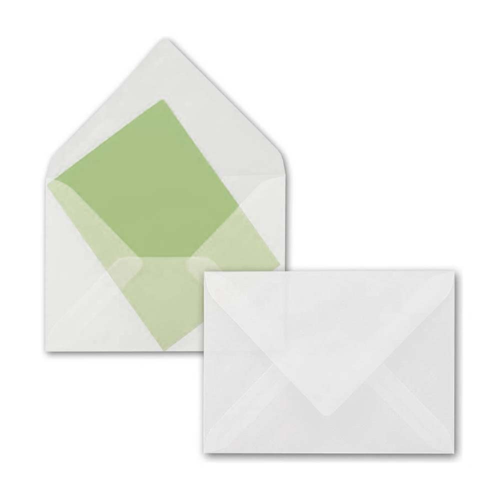Transparente Briefumschläge erhaltet ihr sowohl mit spitzer als auch mit geraden Klappe: