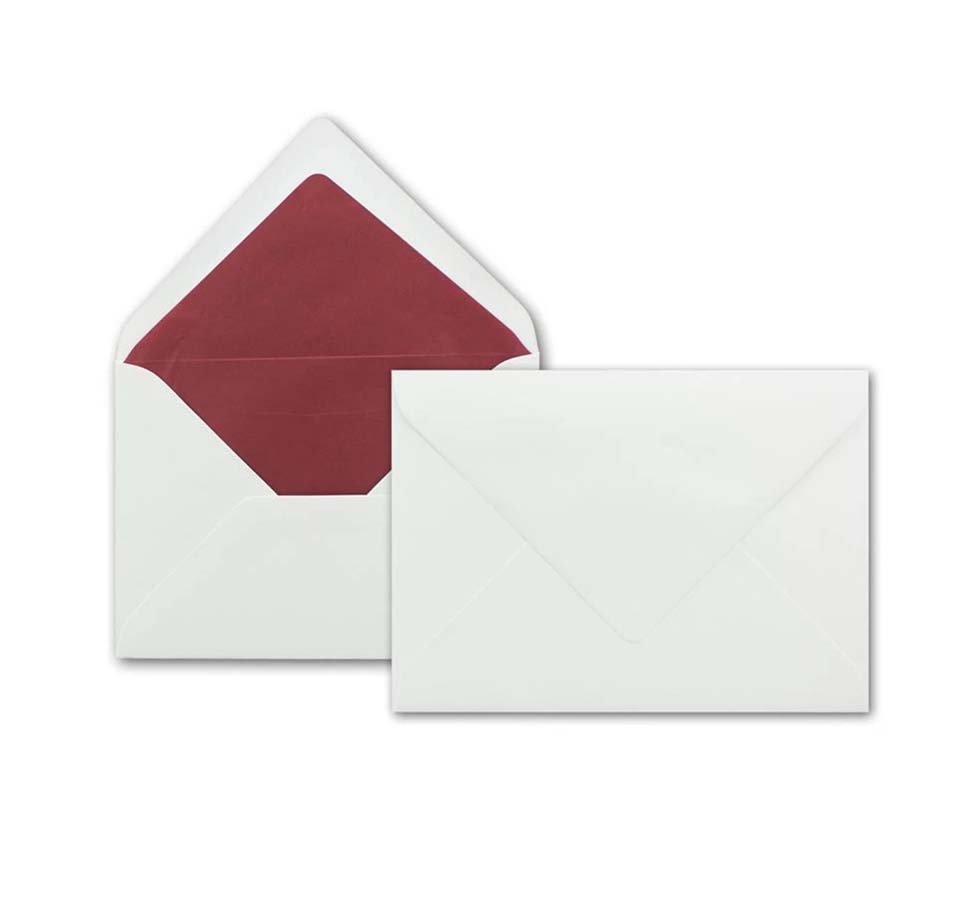 Weiße Briefumschläge mit farbigem Seidenfutter