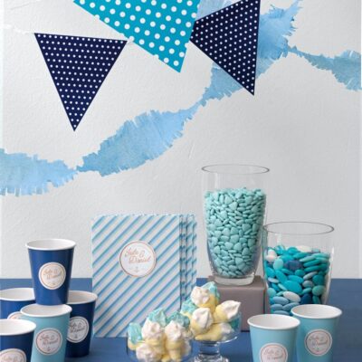 Sweet table: Cake-Pops mit Schmetterlingen und hellblauen Schleifchen