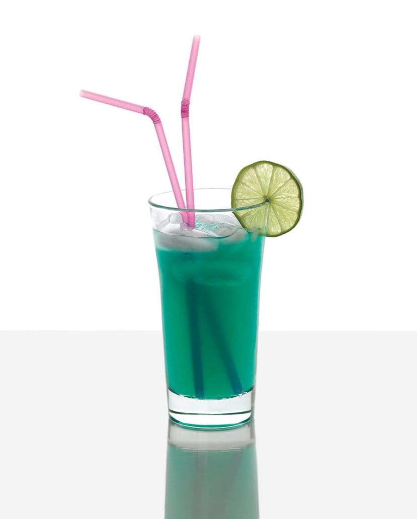 Blue Curaçao und Limettensaft mischen und mit einem Barlöffel kräftig umrühren.