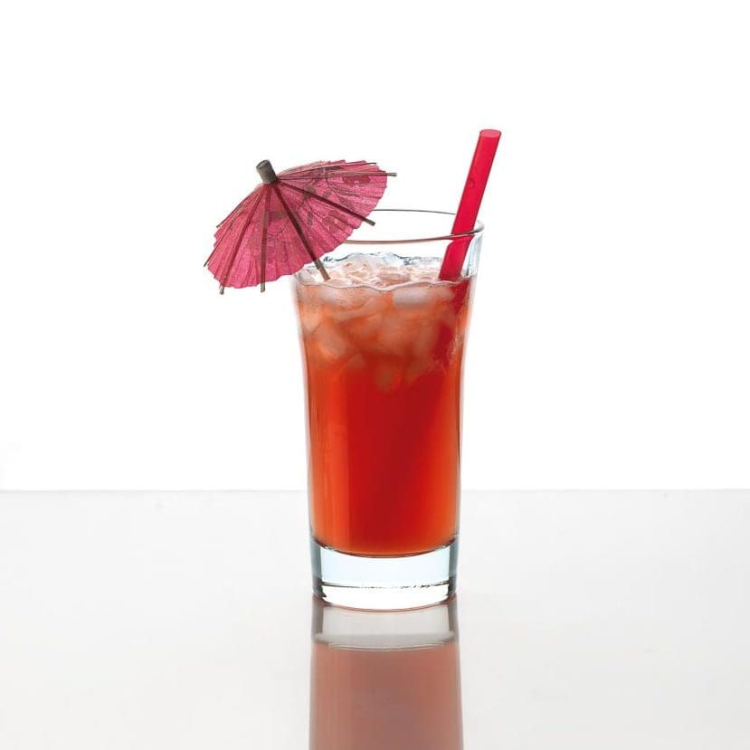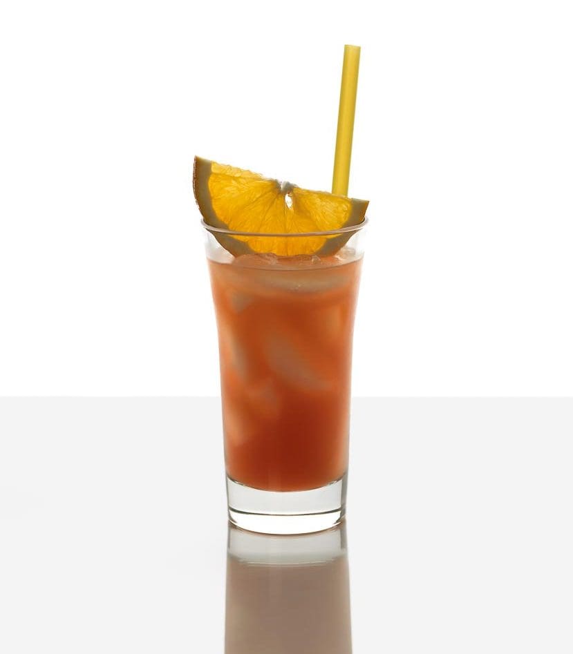 Limettensaft, Orangensaft, Rum und Grenadine mixen und kräftig rühren.