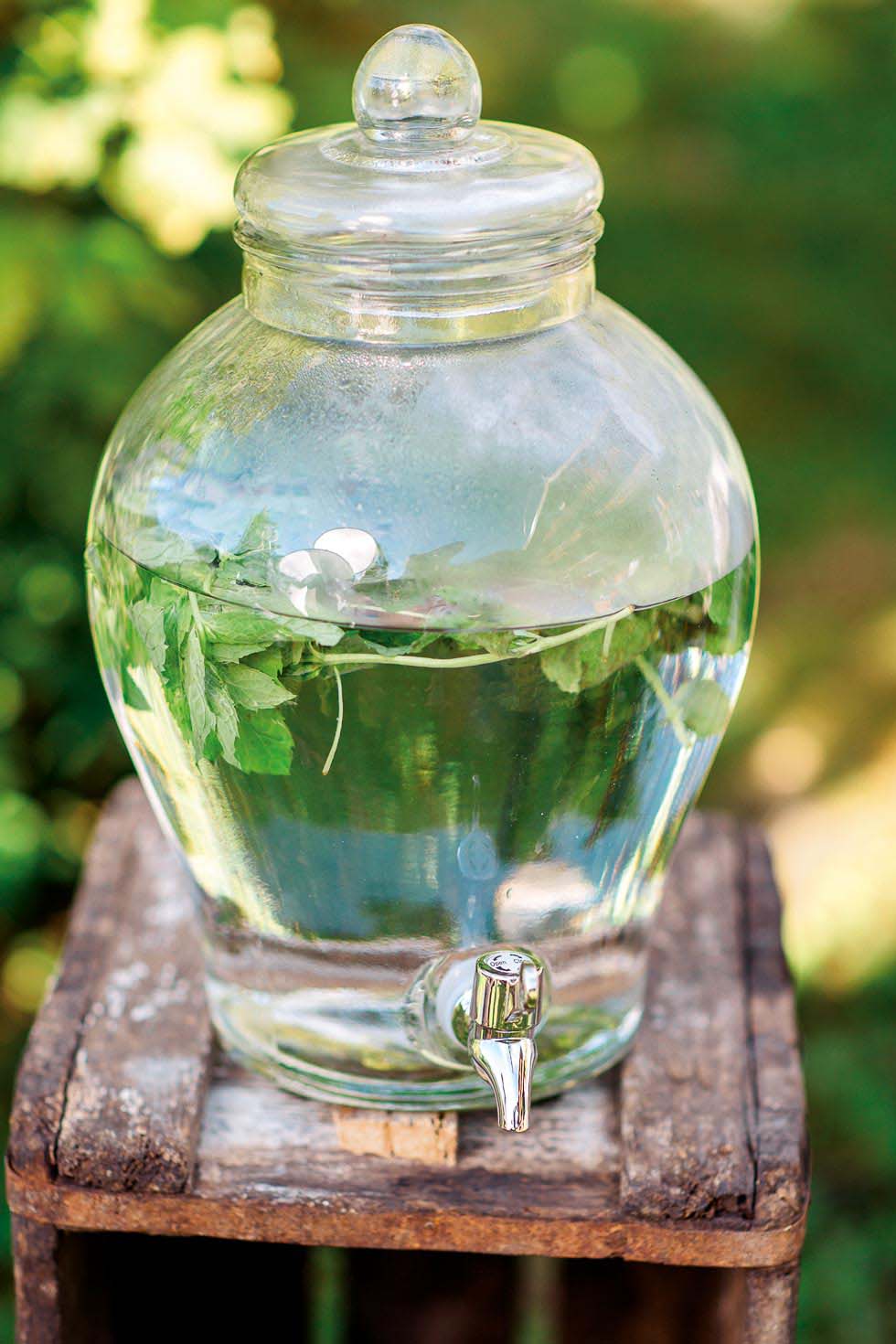 Die Flüssigkeiten mixen und ergänzt die Limettenscheiben und Minzblätter, damit sie ihr Aroma abgeben können.