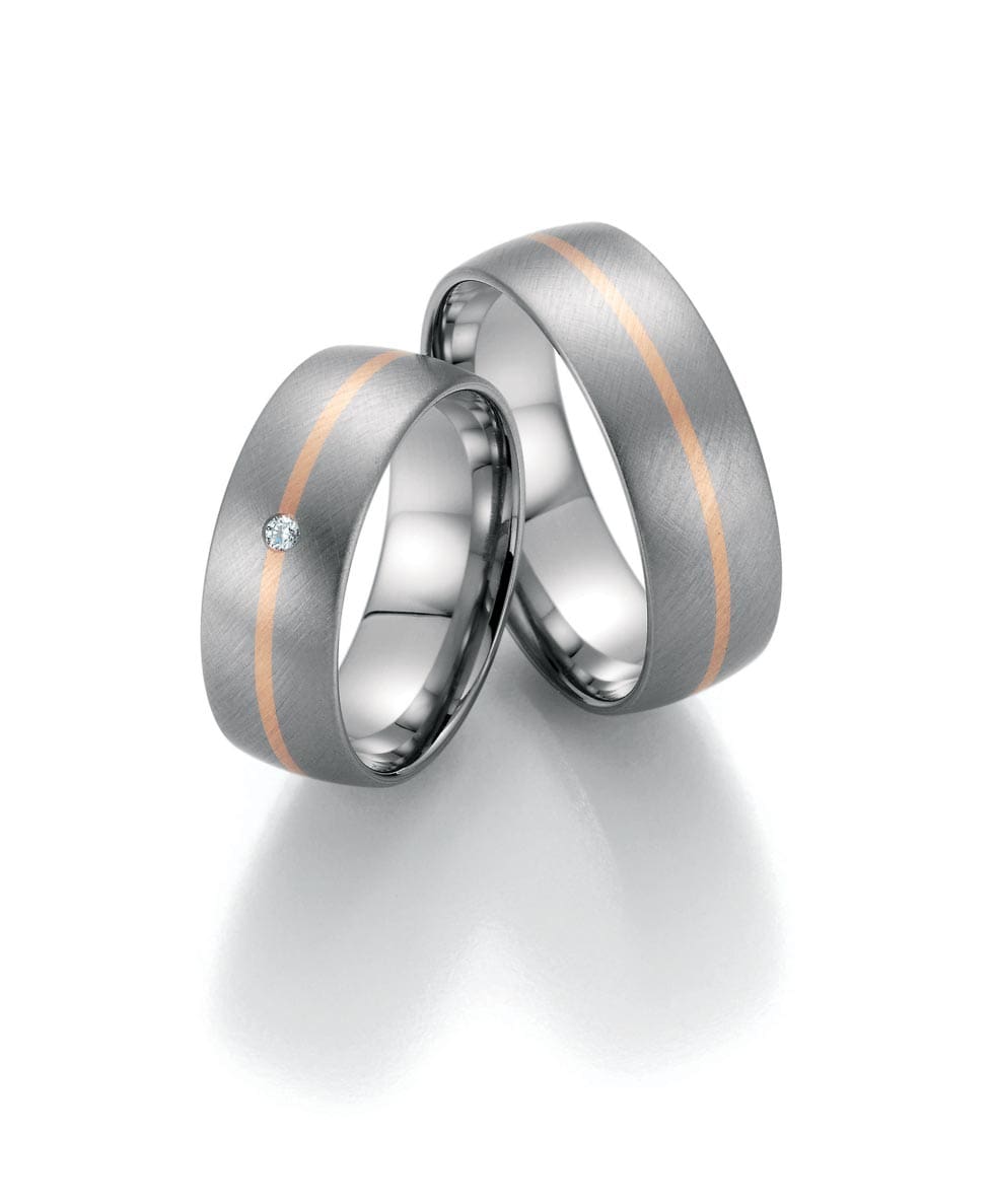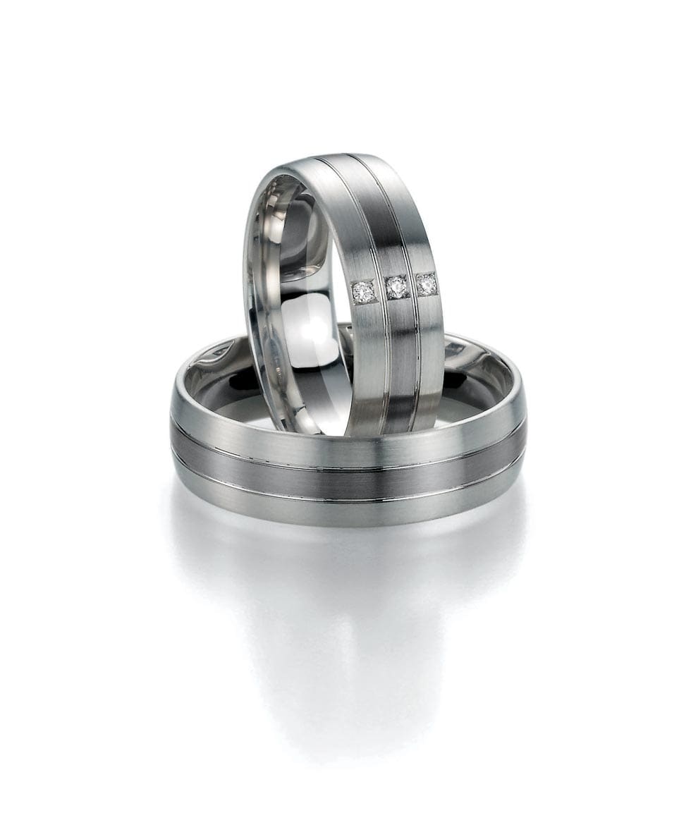 Wer es außergewöhnlich mag, kann auch Carbon mit einem Edelmetall kombinieren, denn das anthrazitfarbene Hightech-Werkstoff ergänzt spannende Hell-Dunkel-Kontraste mit allen Trauringmaterialien.