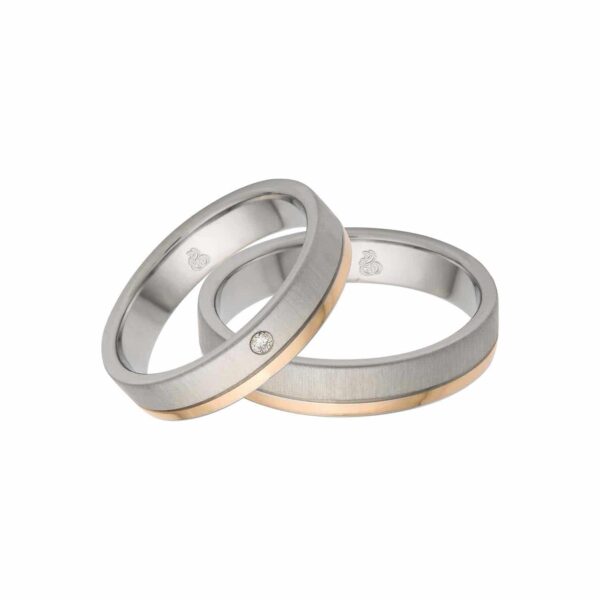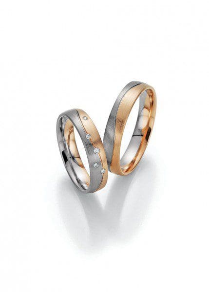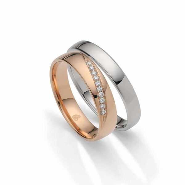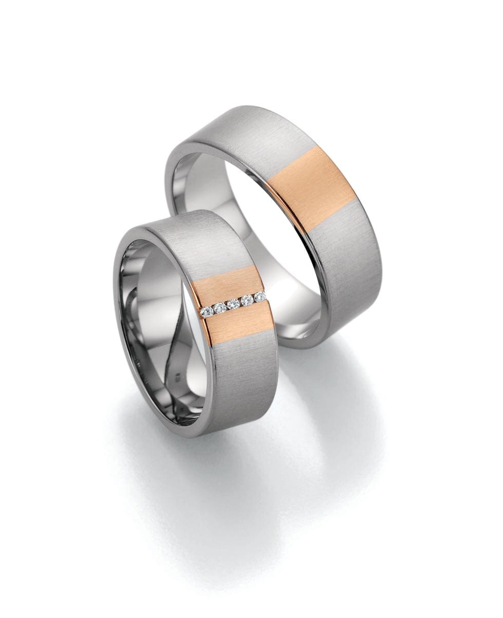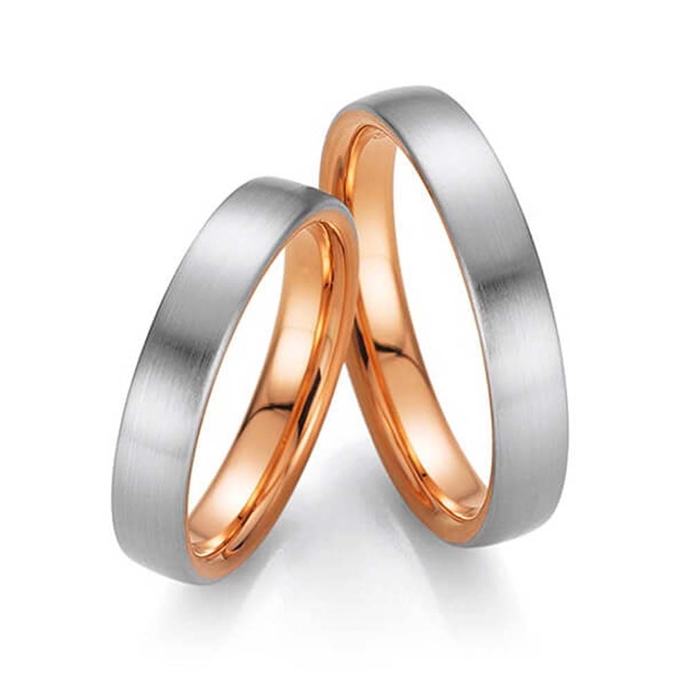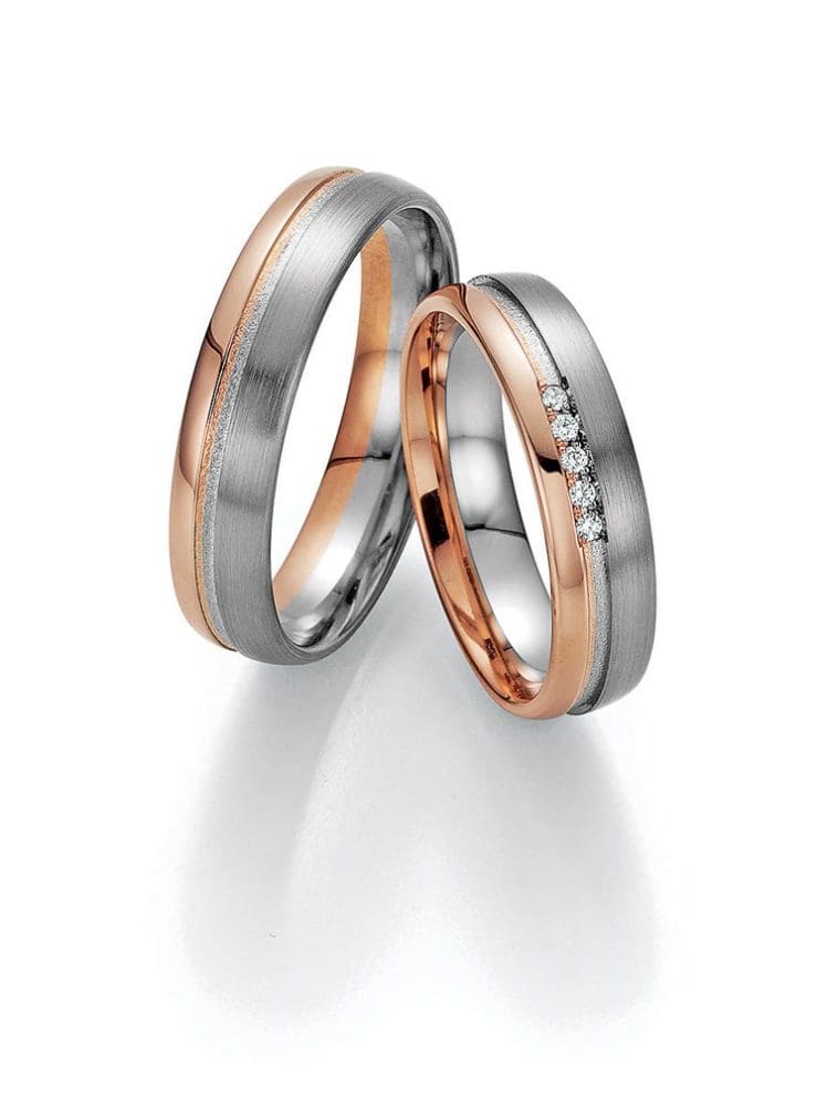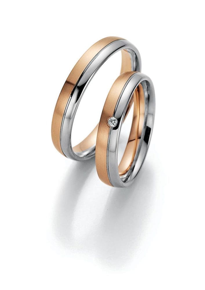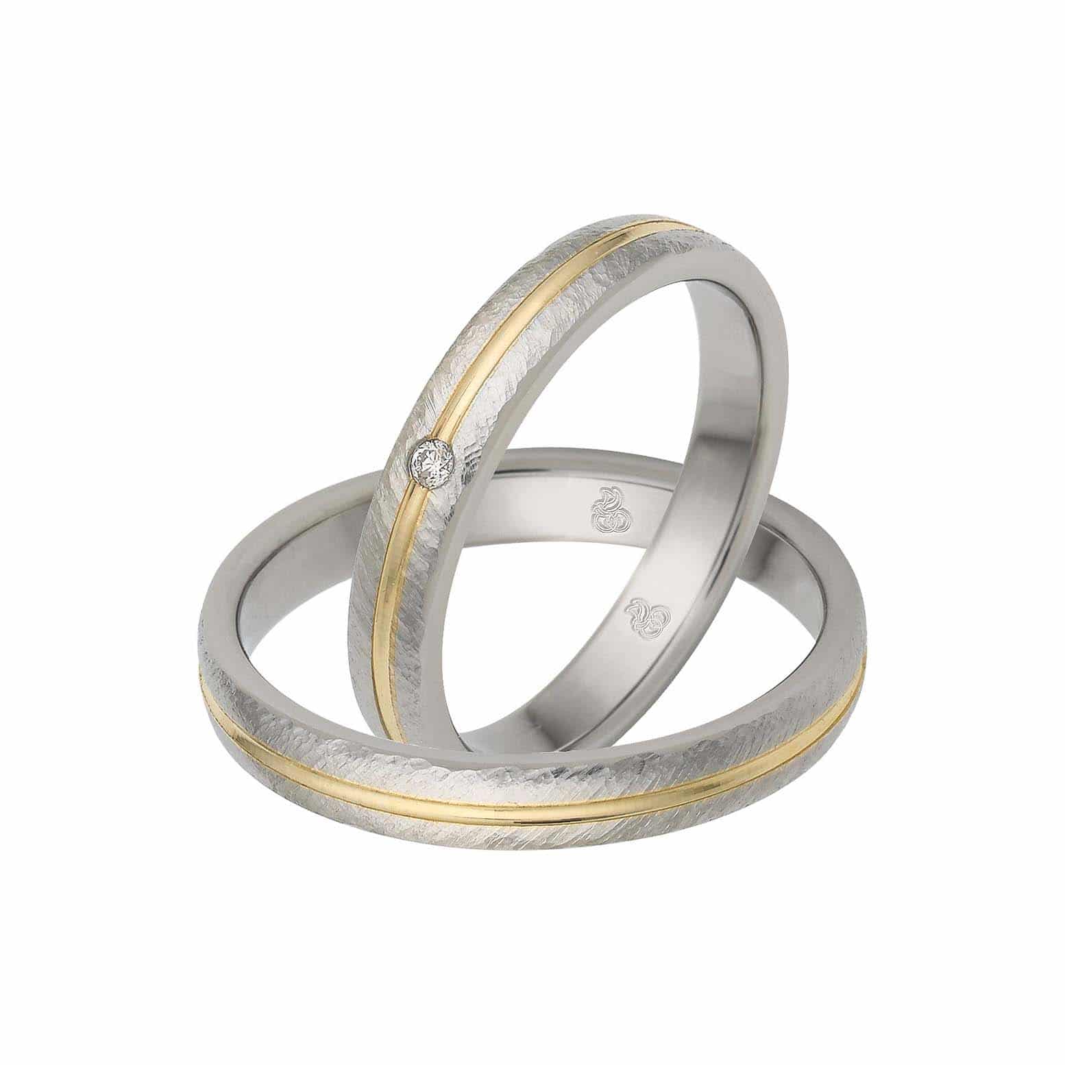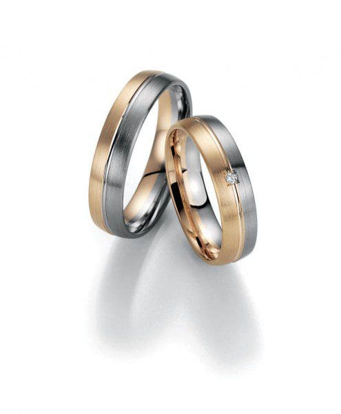 Ein großer Anteil heller Metallfarben wie zum Beispiel Platin oder Weißgold sowie schlichte Designs machen eure zweifarbigen Bicolor Trauringe elegant.
