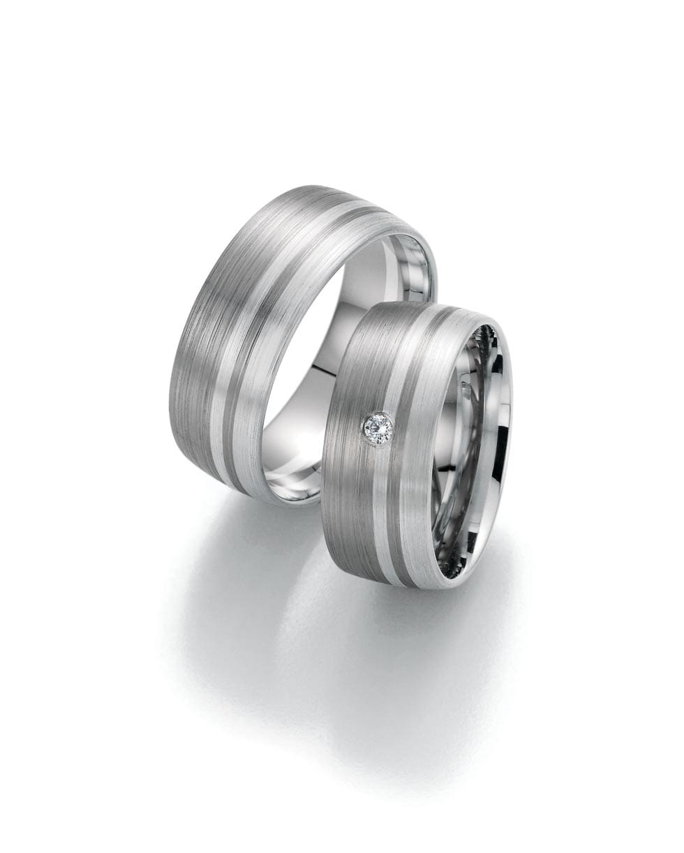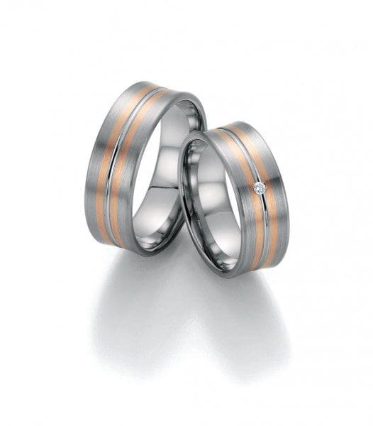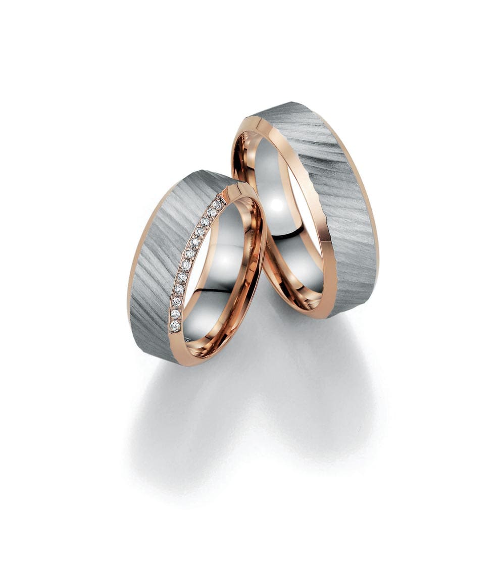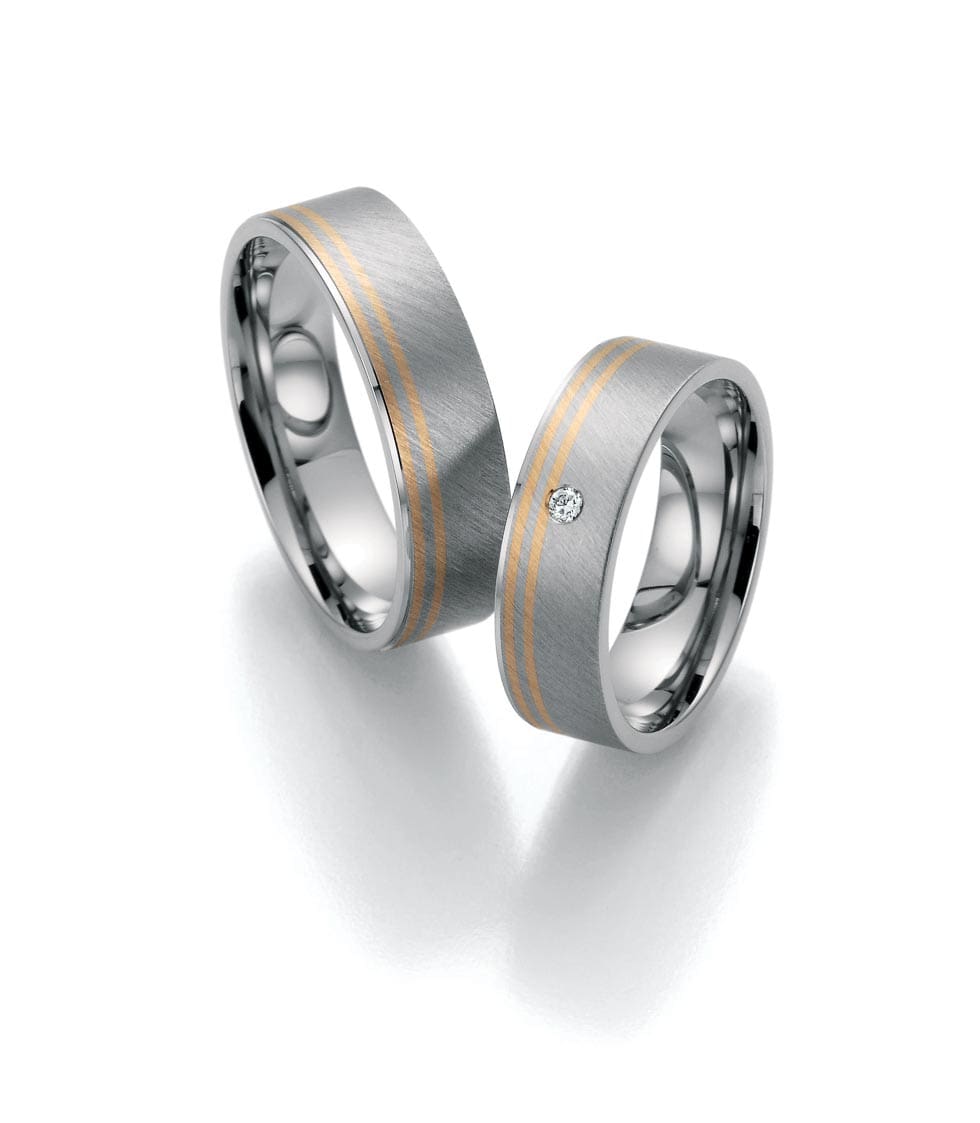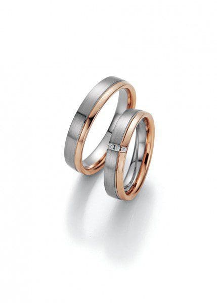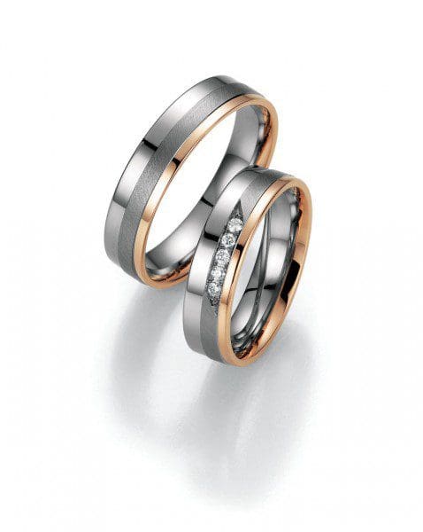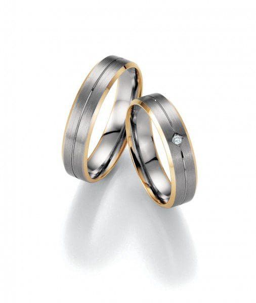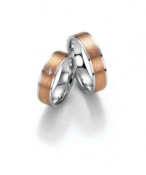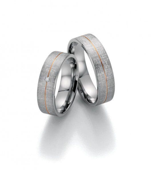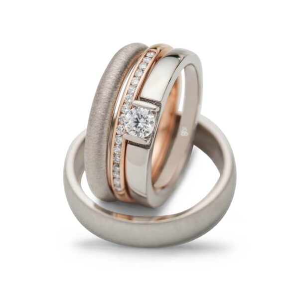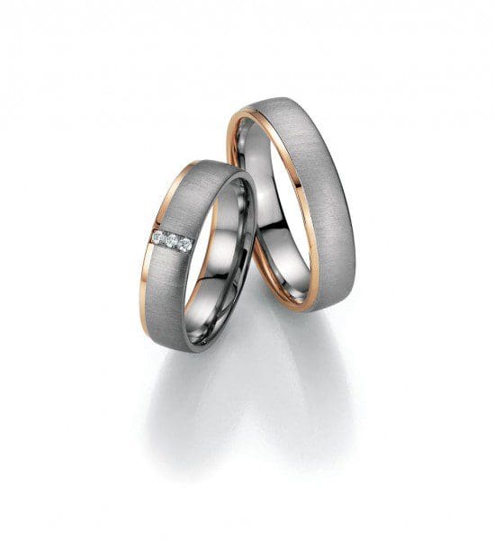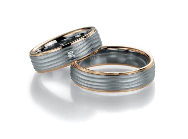 Zusätzlich wirken Trauringe mit einem großen Anteil silberfarbener Metalle immer moderner als zweifarbige Eheringe mit einem großen Farbanteil warmer Goldfarben.