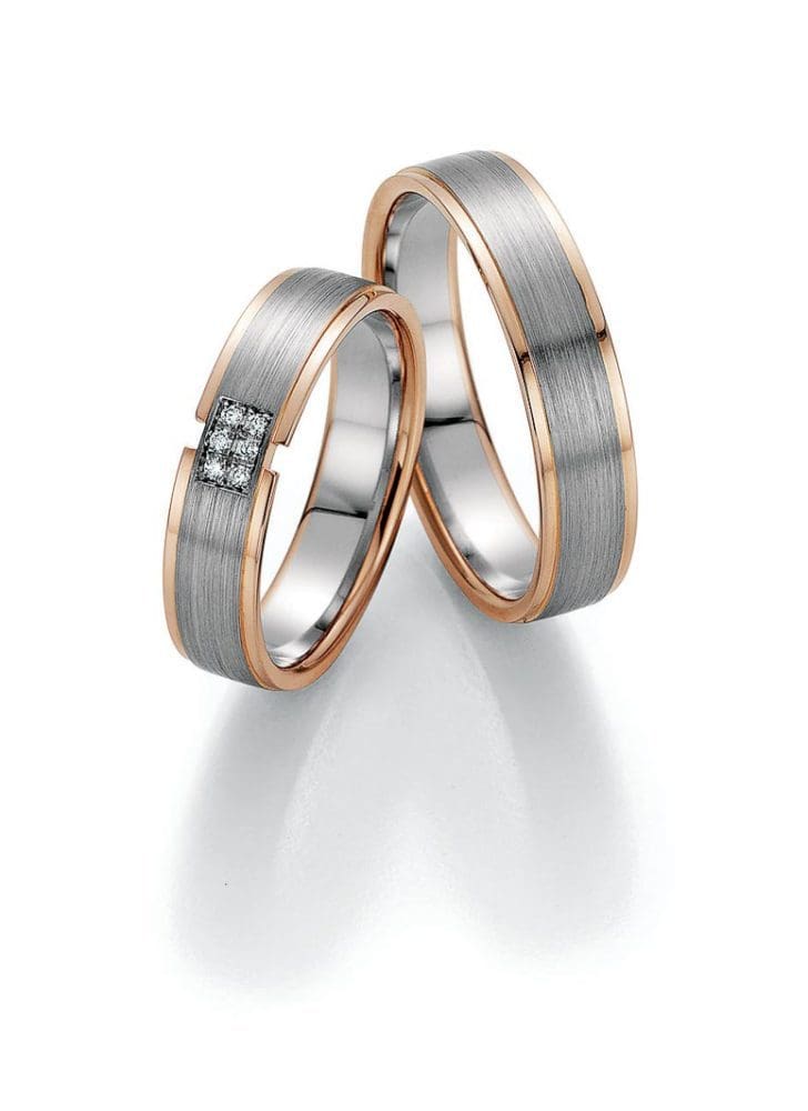 Schlichte, gerade Formen lassen eure eure Bicolor Eheringe modern erscheinen.