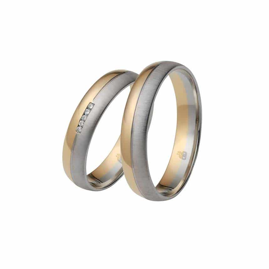 Runde Schienenformen, ein größerer Anteil warmer Edelmetallfarben oder die Ergänzung von Brillanten machen eure Bicolor Eheringe klassisch und romantisch.