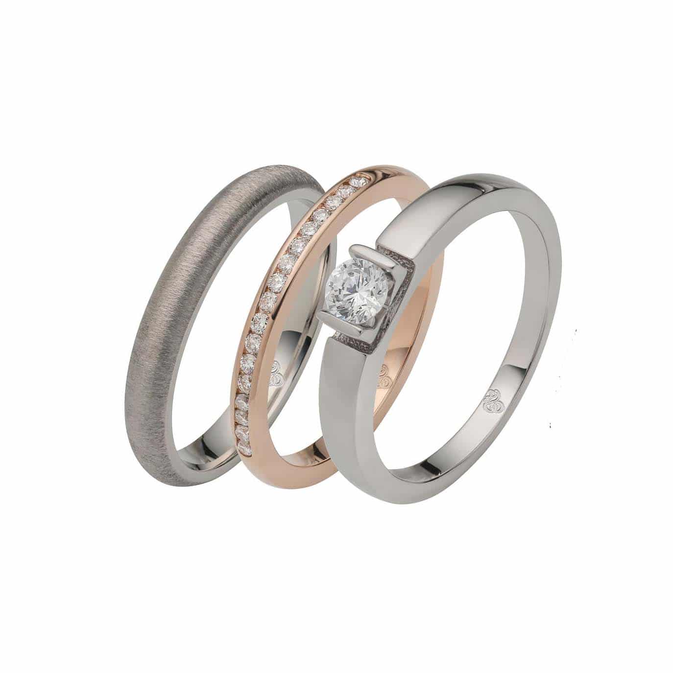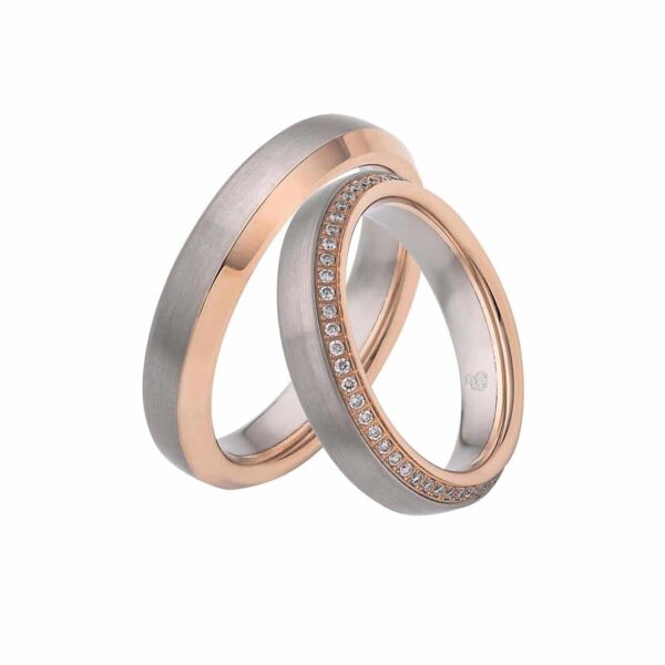Grundsätzlich können alle Trauring-Materialien miteinander verbunden werden. So könnt ihr sogar verschiedene Legierungen dazu verwenden, Bicolor-Trauringe herzustellen.