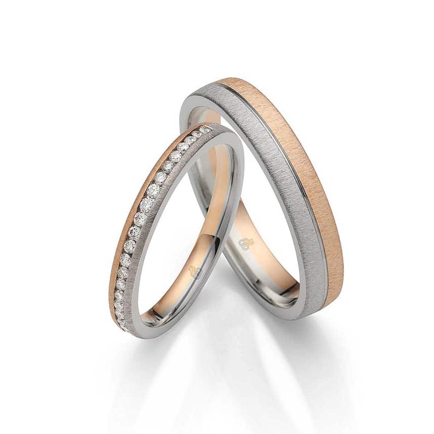 Findet hier traumhaft schöne Eheringe Designs und die verschiedensten Gestaltungsoptionen für eure Bicolor Trauringe mit den verschiedensten Edelmetallen.