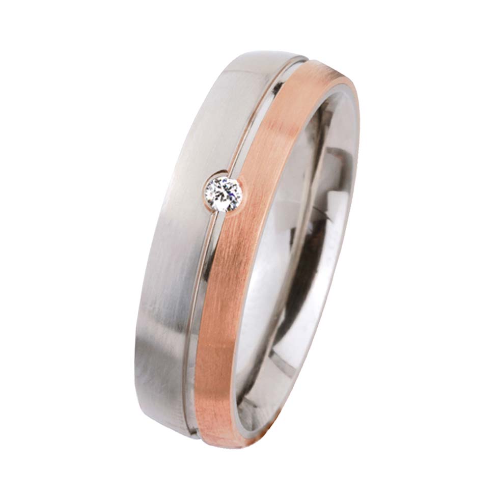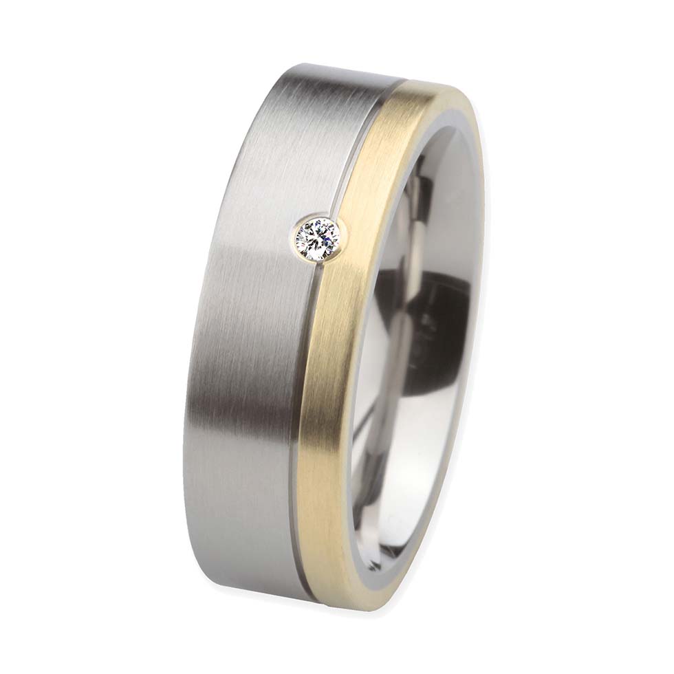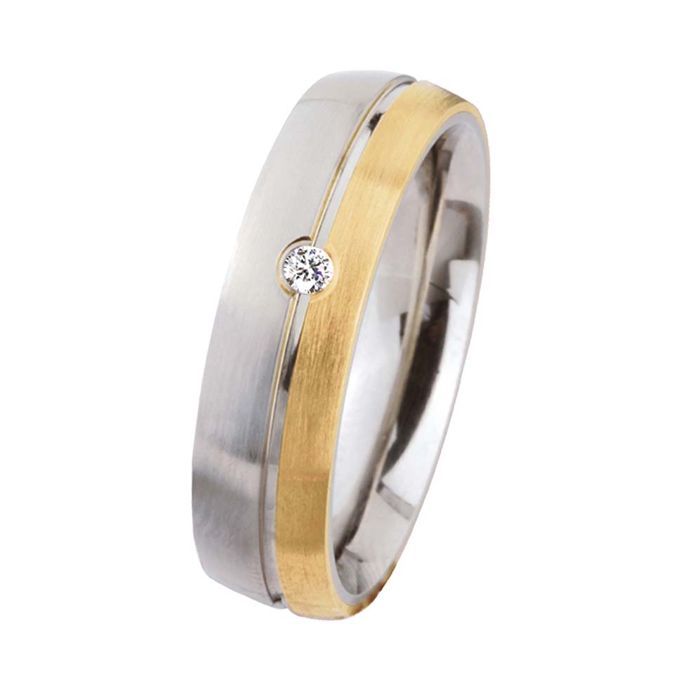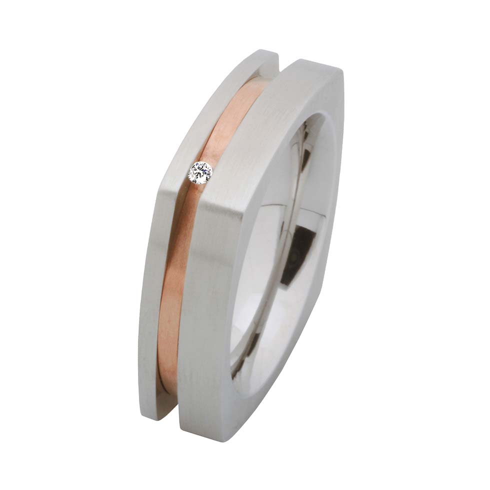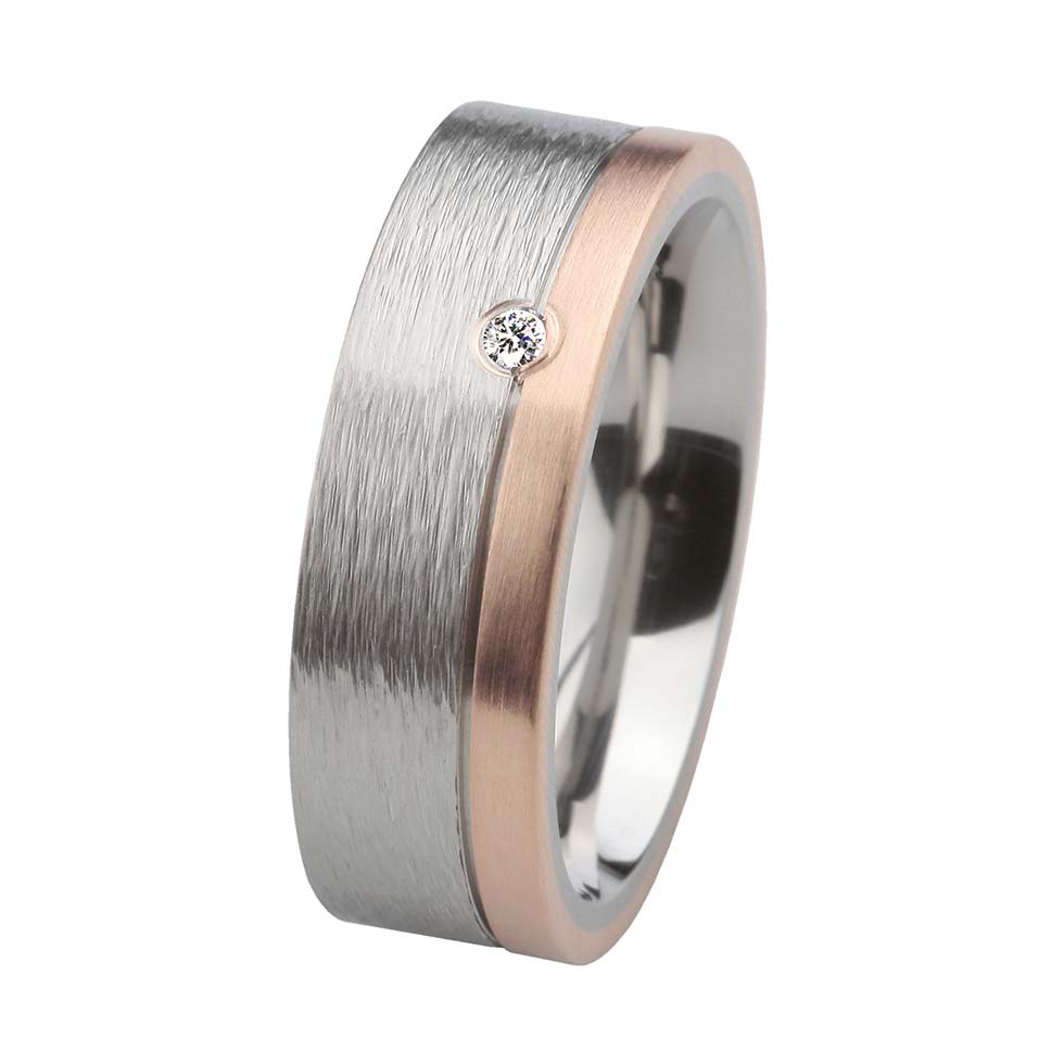 Eheringe aus Edelstahl haben unendlich viele Designmöglichkeiten. Denn der helle Grauton bietet die beste Basis für spannende Materialkombinationen mit Gelbgold, Roségold oder Carbon. Und kombiniert ihr Edelstahl mit anderen gräulichen Metallen, wie Weißgold, Platin, Palladium oder Titan erhaltet ihr großartige Schattierungen.