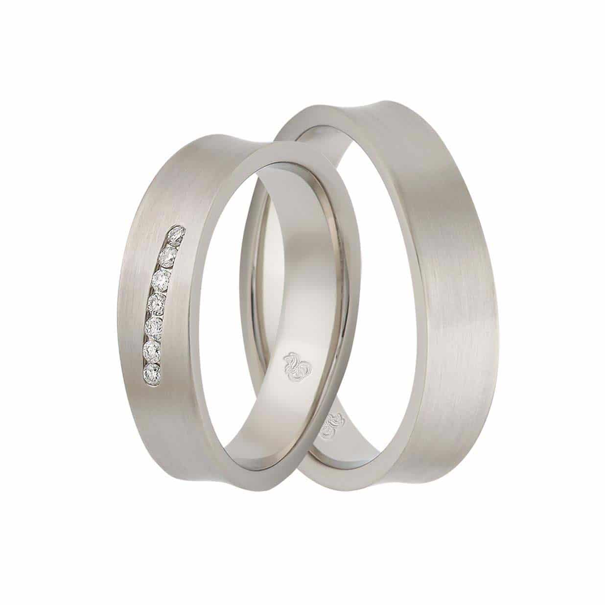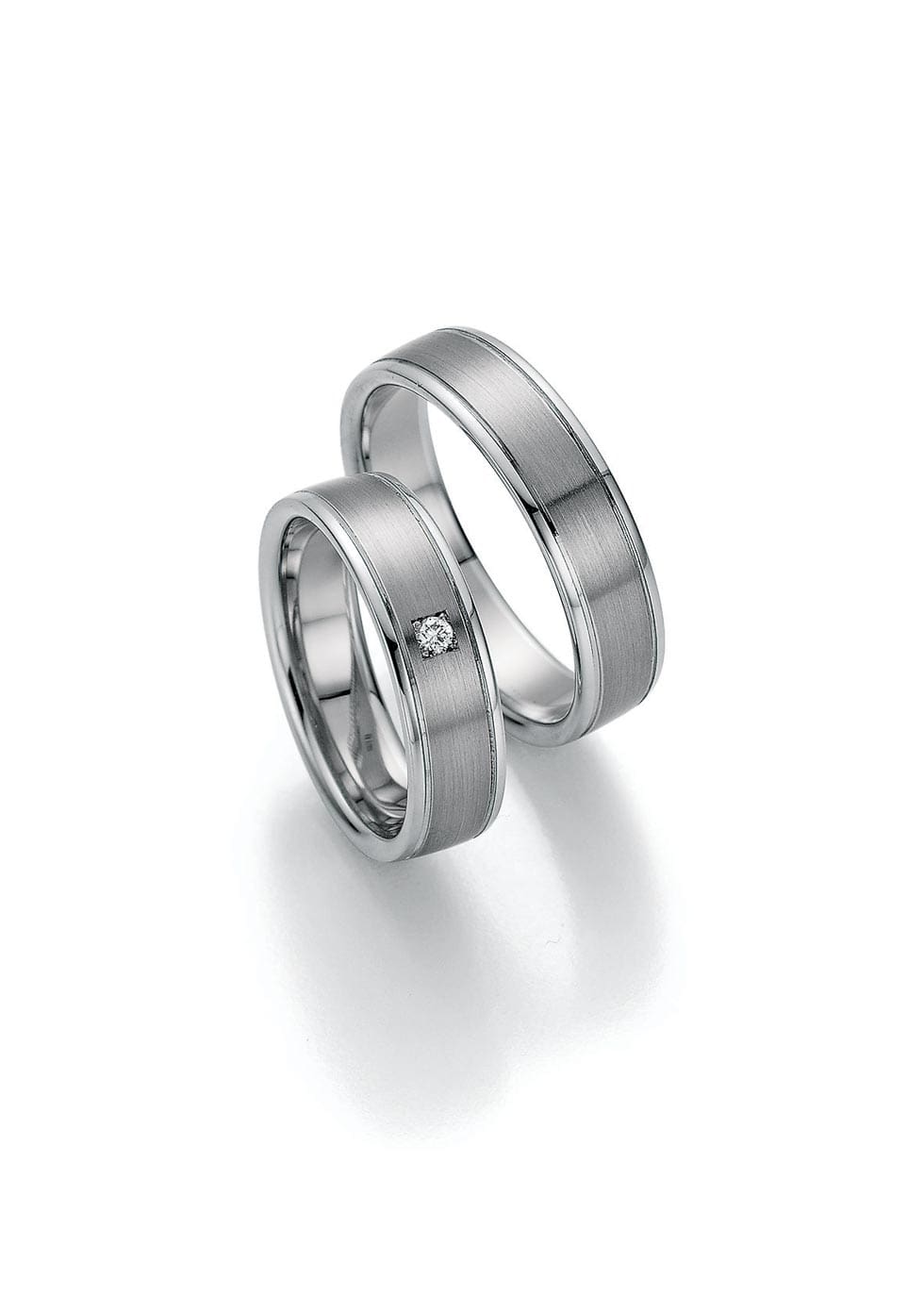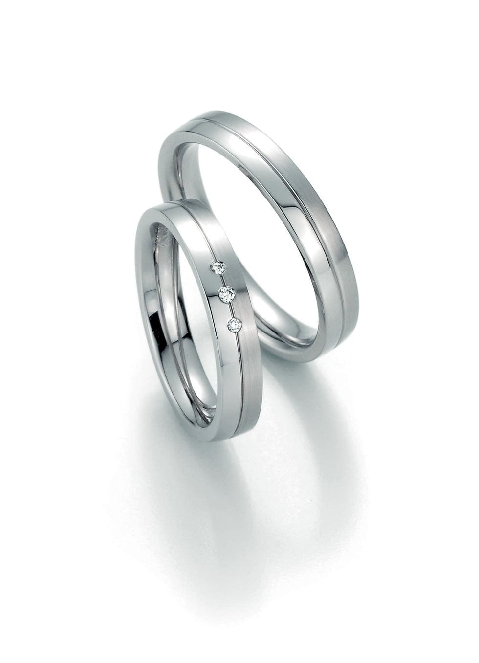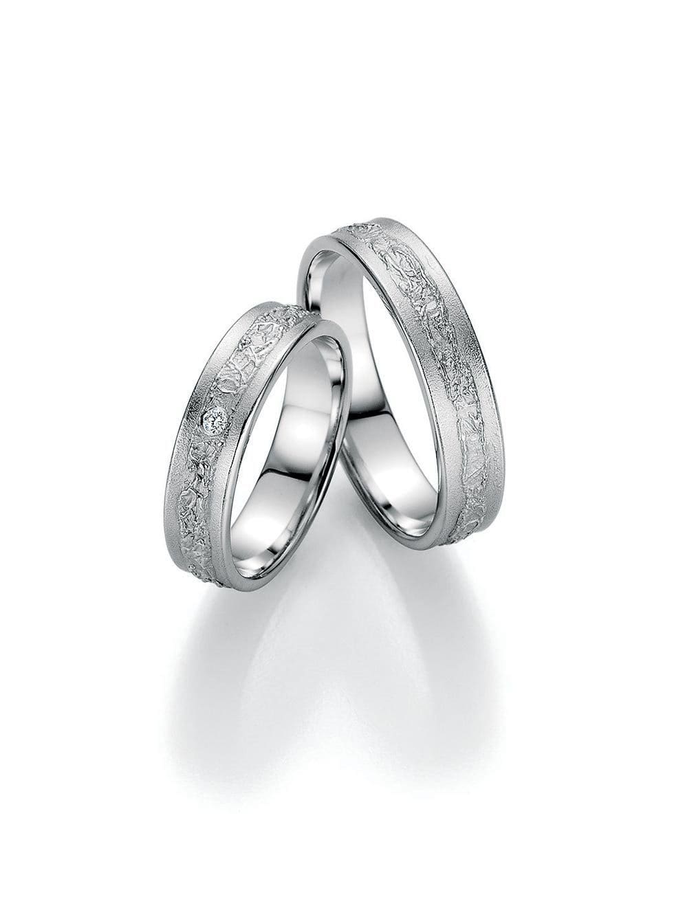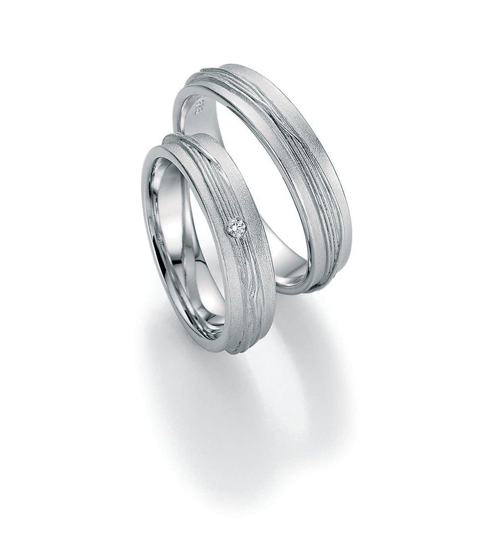 Aber auch die Kombination der verschiedenen silberfarbenen Gold-Farbnuancen Weiß, Grau und Haselnuss ergibt absolut moderne Designansätze weit ab vom klassischen Ehering.