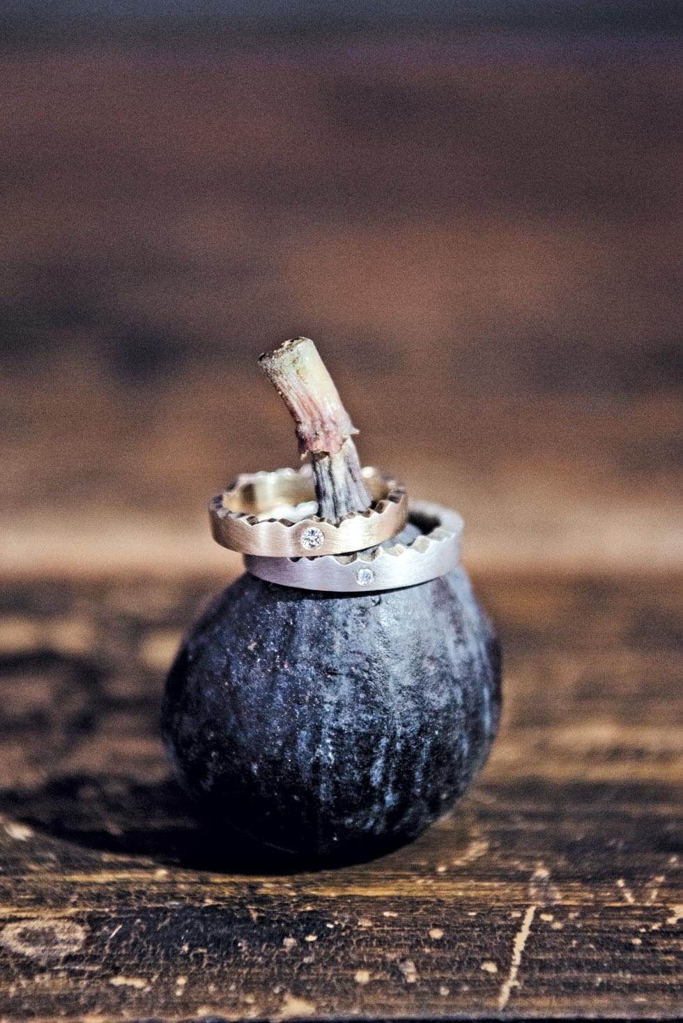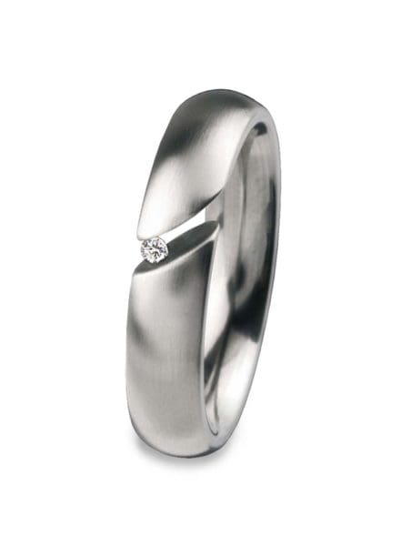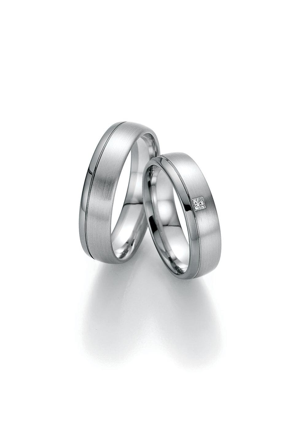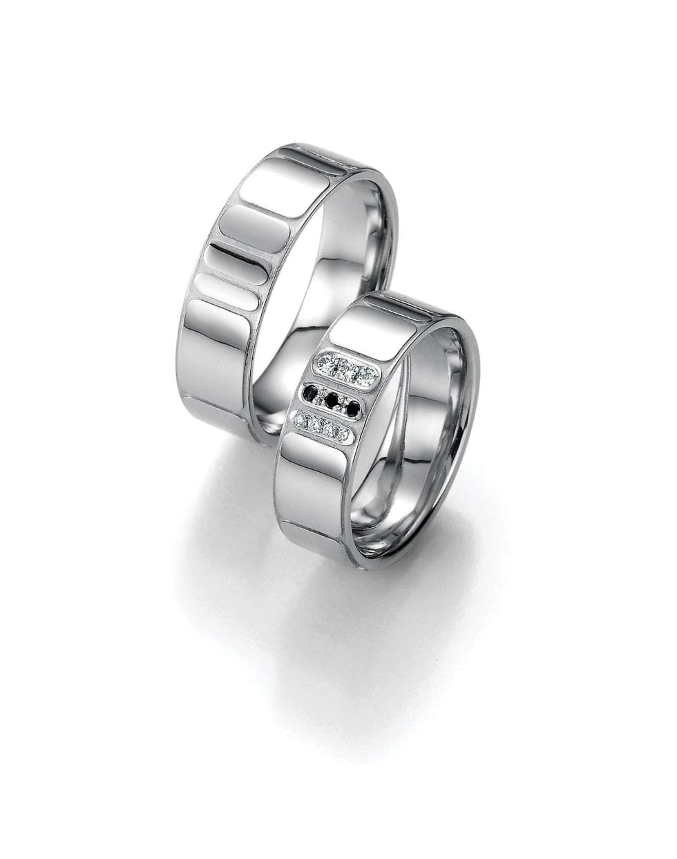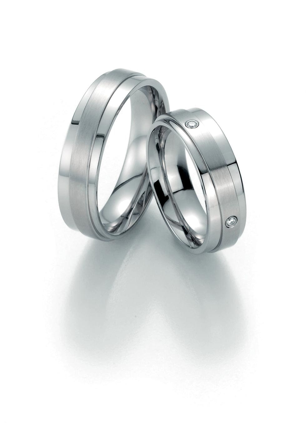 Aber auch die Kombination der verschiedenen silberfarbenen Gold-Farbnuancen Weiß, Grau und Haselnuss ergibt absolut moderne Designansätze weit ab vom klassischen Ehering.