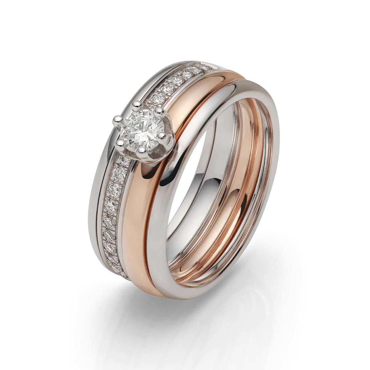 - Weißgold und Gelbgold oder Apricotgold für variabel kombinierbare Trauringe