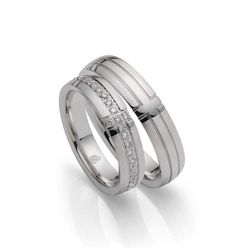 Die modernen weißgoldenen Hochzeitsringe stehen vor allem blassen und sehr hellen Hauttypen. Habt ihr einen dunkleren Teint, ist eventuell ein Grauton für euch besser.