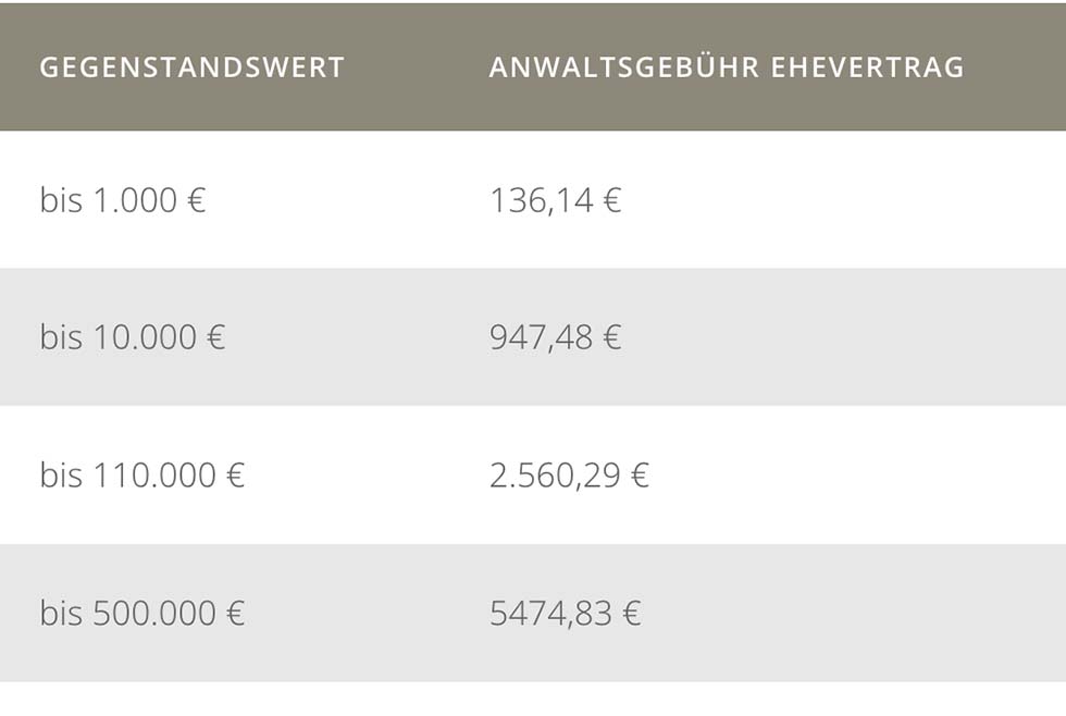 Was kostet ein Ehevertrag inklusive Beratung vom Anwalt?