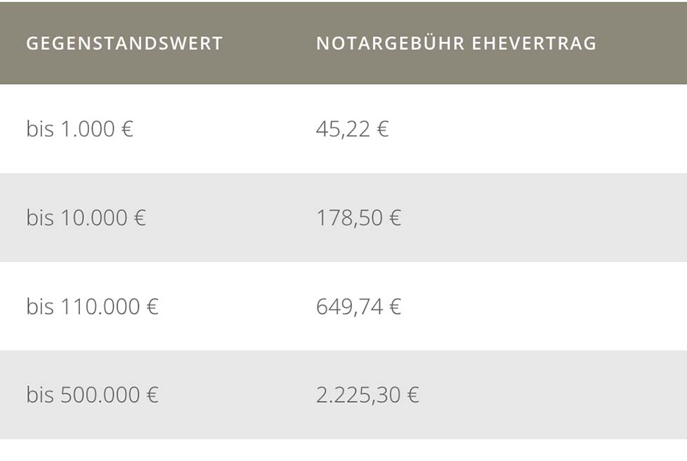 Was kostet der Ehevertrag beim einen Notar?