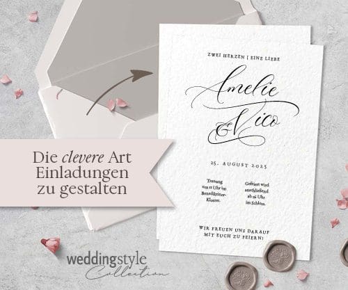 Denn heiratet ihr "nur" standesamtlich, werden in der Regel die klassischen Einladungstexte für die Hochzeitseinladung verwendet. Dann kommen auch alle Einladungskarten für die Hochzeit in verschiedensten Stilen in Frage, ohne dass ihr etwas beachten müsst.