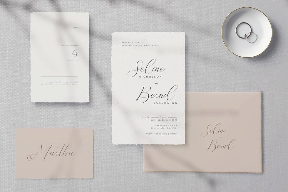 → Alle Hochzeitseinladungen Designs entdecken & sofort testen
