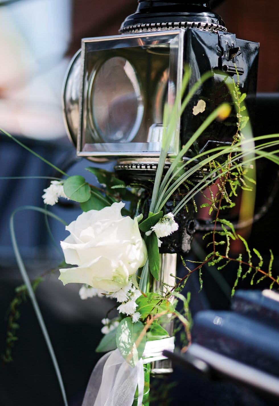 „Andrea suchte tagelang nach schönen Blumengestecken für den Autoschmuck, nachdem sie vergeblich versucht hatte mich von einer Cinderella-Kutsche zu überzeugen“, grinste Frank.