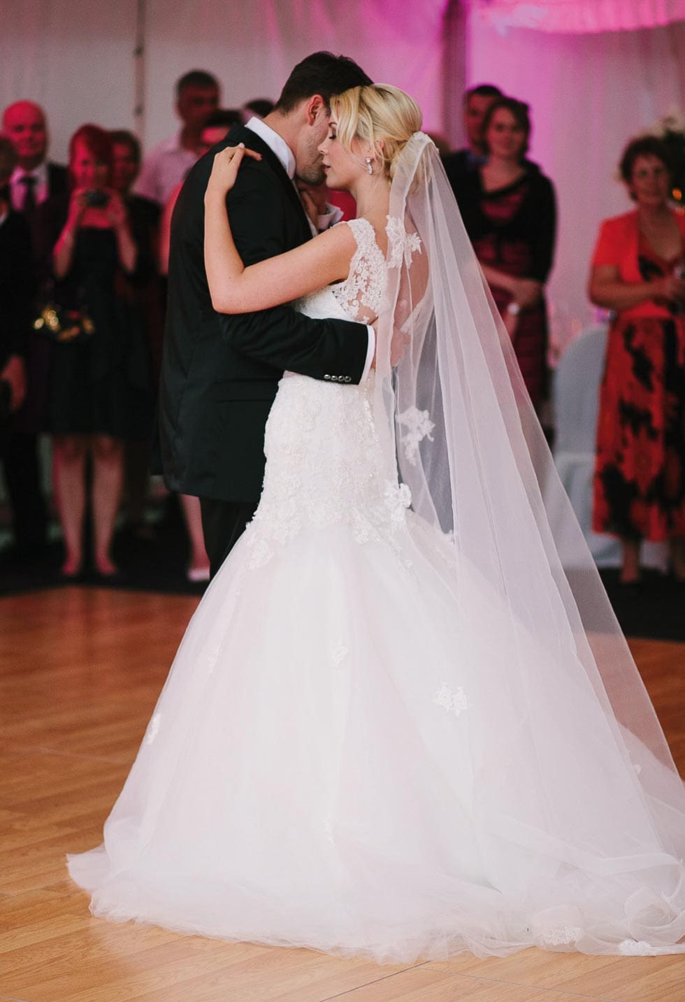 „Wir hatten uns zu einem 3-tägigen Hochzeitstanz-Crashkurs angemeldet, den wir allerdings nur einmal besuchten. Somit sind wir sozusagen am Hochzeitsabend ins kalte Wasser gesprungen, machten einfach unser Ding und ließen uns von der Musik leiten.