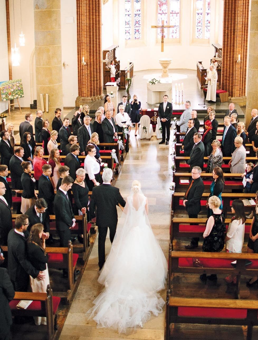 Die Wahl für die Kirche und Diakon Paul Sommer war schnell getroffen, weil Andrea hier bereits zur Kommunion ging. „Wir haben viel Zeit für die Gestaltung der Messe benötigt, weil wir sie katholisch, jung und für jedermann mitreißend gestalten wollten“, berichtet Frank. „Also haben wir unheimlich viel Recherche, Zeit und Emotionen in die Zusammenstellung und das Kirchenheftchen gesteckt: Welches Lied wird an welcher Stelle gespielt, wer liest welche Fürbitten und welche Geschichten (vorgetragen von Familienangehörigen) passen zu uns. Nicht zuletzt dank der grandiosen Stimme unserer Solistin hätte es emotionaler und schöner nicht sein können. Die positiven Rückmeldungen (besonders von denen, die nicht so gerne einen Gottesdienst besuchen), sprachen für sich.“
