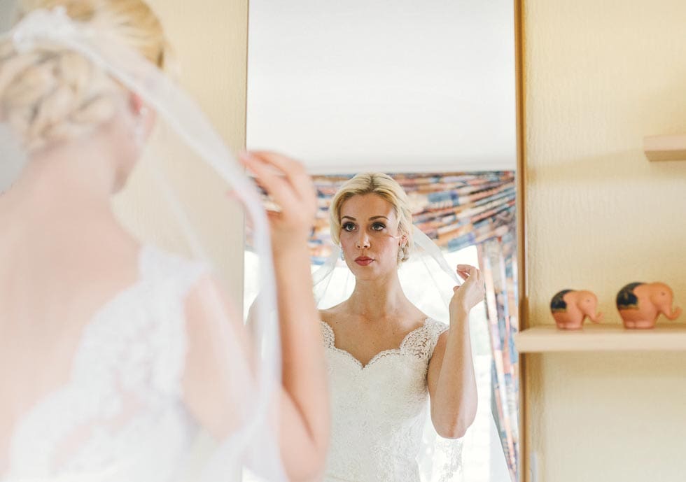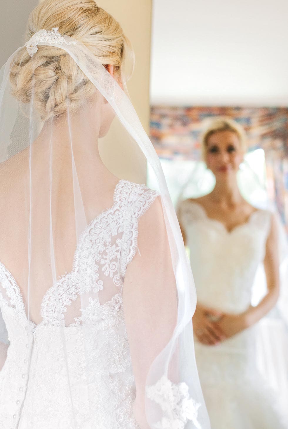 „Kurz vor der Hochzeit fand ich Gott sei Dank Schneidereien in Norderstedt und Ennigerloh, die gemeinsam alles änderten. Auch meine Omi hat bis zum letzten Tag vor der Hochzeit noch genäht, damit alles perfekt wurde. Ich erinnere mich gut daran, dass ich mich kurz gefragt hatte: ‚Ist es Perfektionismus oder lässt mich nur die Nervosität jedes Detail in Frage stellen?‘“, lacht Andrea heute. „Also besser ist es, früh genug mit der Brautkleidsuche zu beginnen. Alles braucht seine Zeit.“