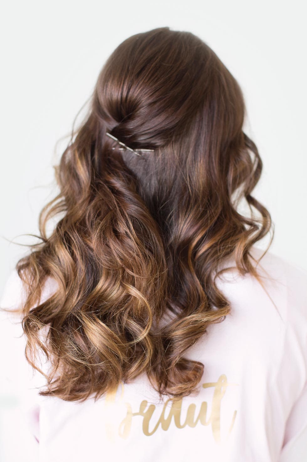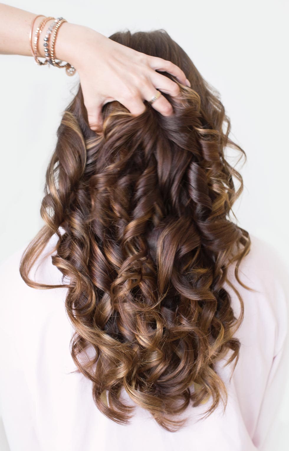 Damit die Locken wirklich natürlich aussehen, wurden einzelne Strähnen um einen dicken Lockenstab gedreht.