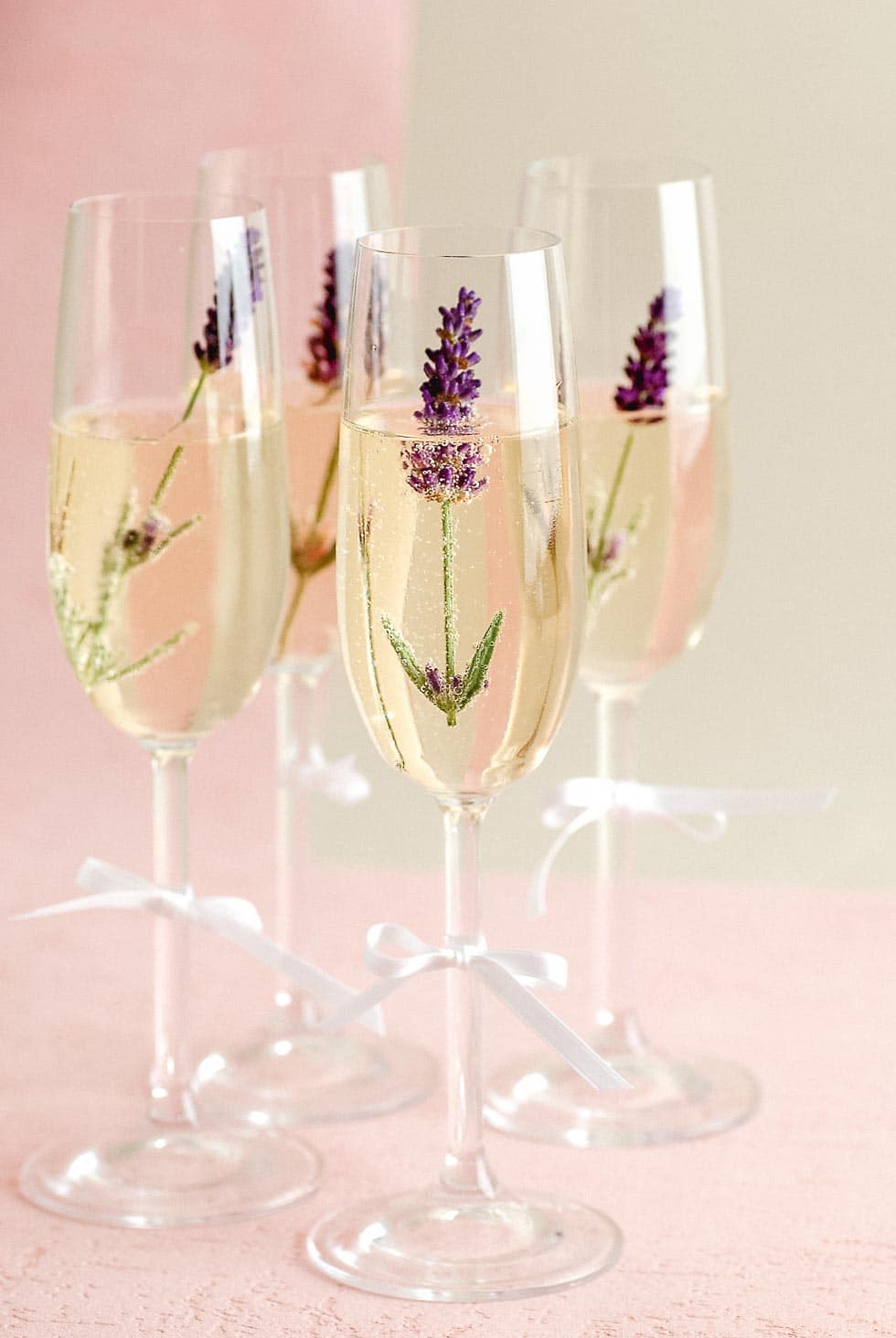 Lavendelblüten sind genauso wie Rosen die Favoriten beim Aromatisieren von Zucker oder als Dekoration von Desserts und Getränken. Ihr könnt sie aber auch in Eiswürfeln einfrieren und somit lange haltbar machen.