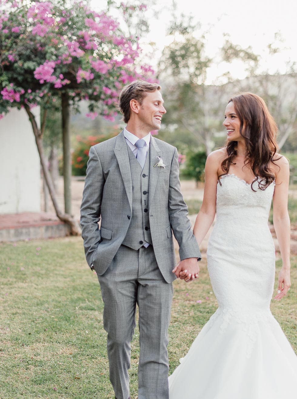 Drei Tage vor der Hochzeit buchten die beiden für alle noch eine Bustour, um zu den Weingütern in Franschhoek zu fahren. Im Boschendal Wine Estate kehrten sie dann auch zum Mittagessen ein. „Das war eine wirklich besondere Zeit für uns alle“, schwärmen Grace und Rob. „Und all das hat sicher auch zu der wundervollen Stimmung an unserem Hochzeitstag beigetragen.“