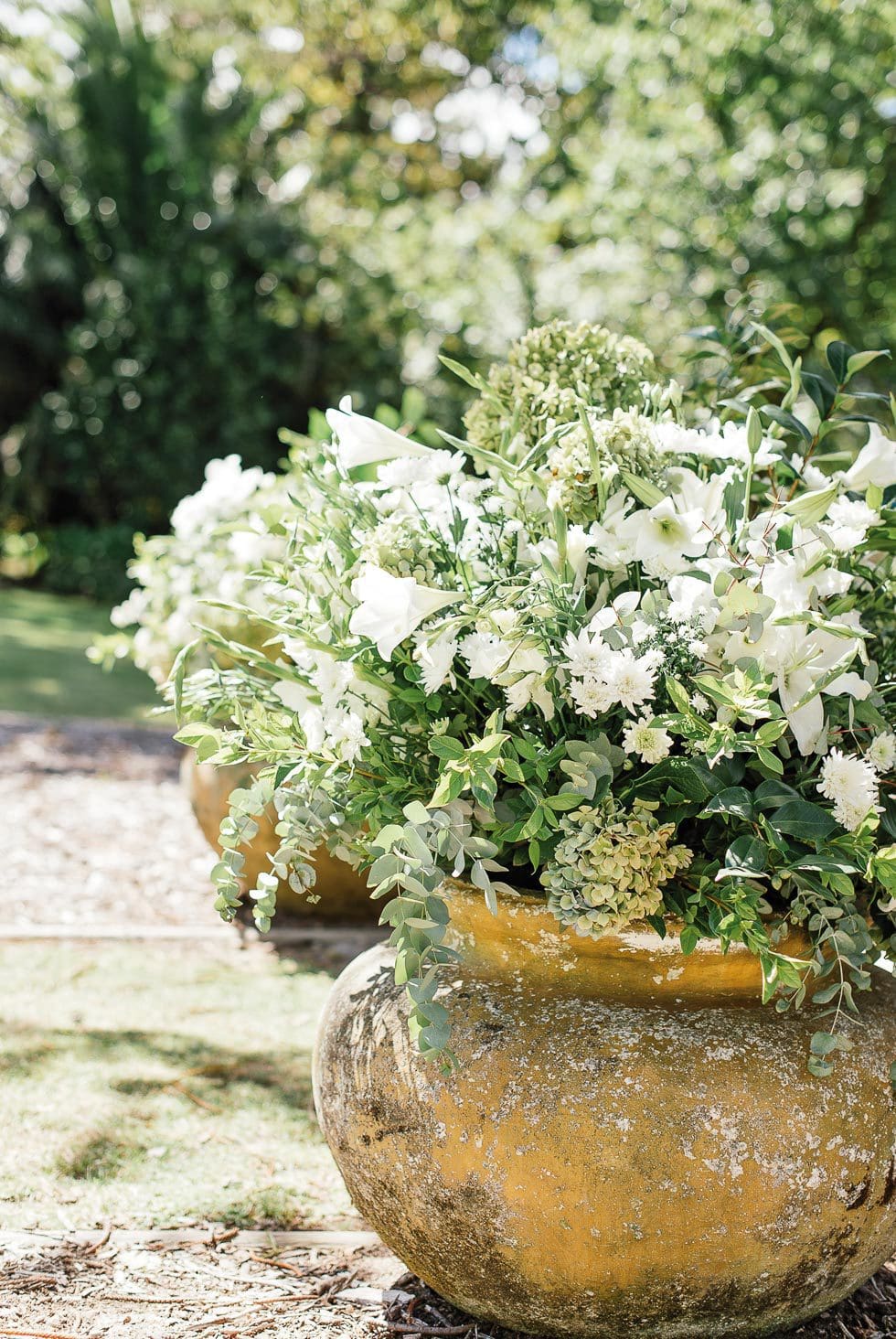 „Unser Hochzeitskonzept waren leichte und neutrale Farben. Wir lieben unsere Location so sehr, dass wir diesen wunderschönen Ort nicht mit kräftigen Farben überfrachten wollten“, erklären die beiden die gelungene Ausgestaltung des Festes.