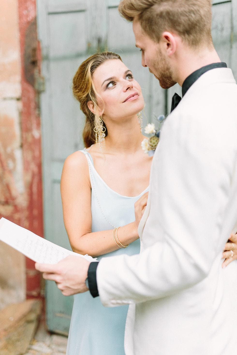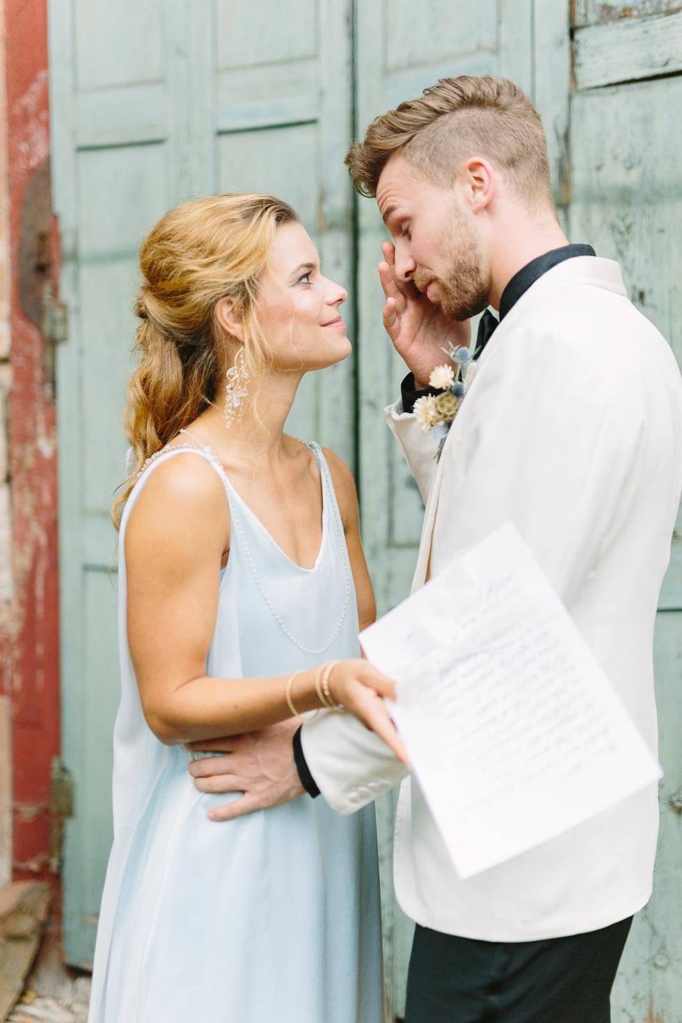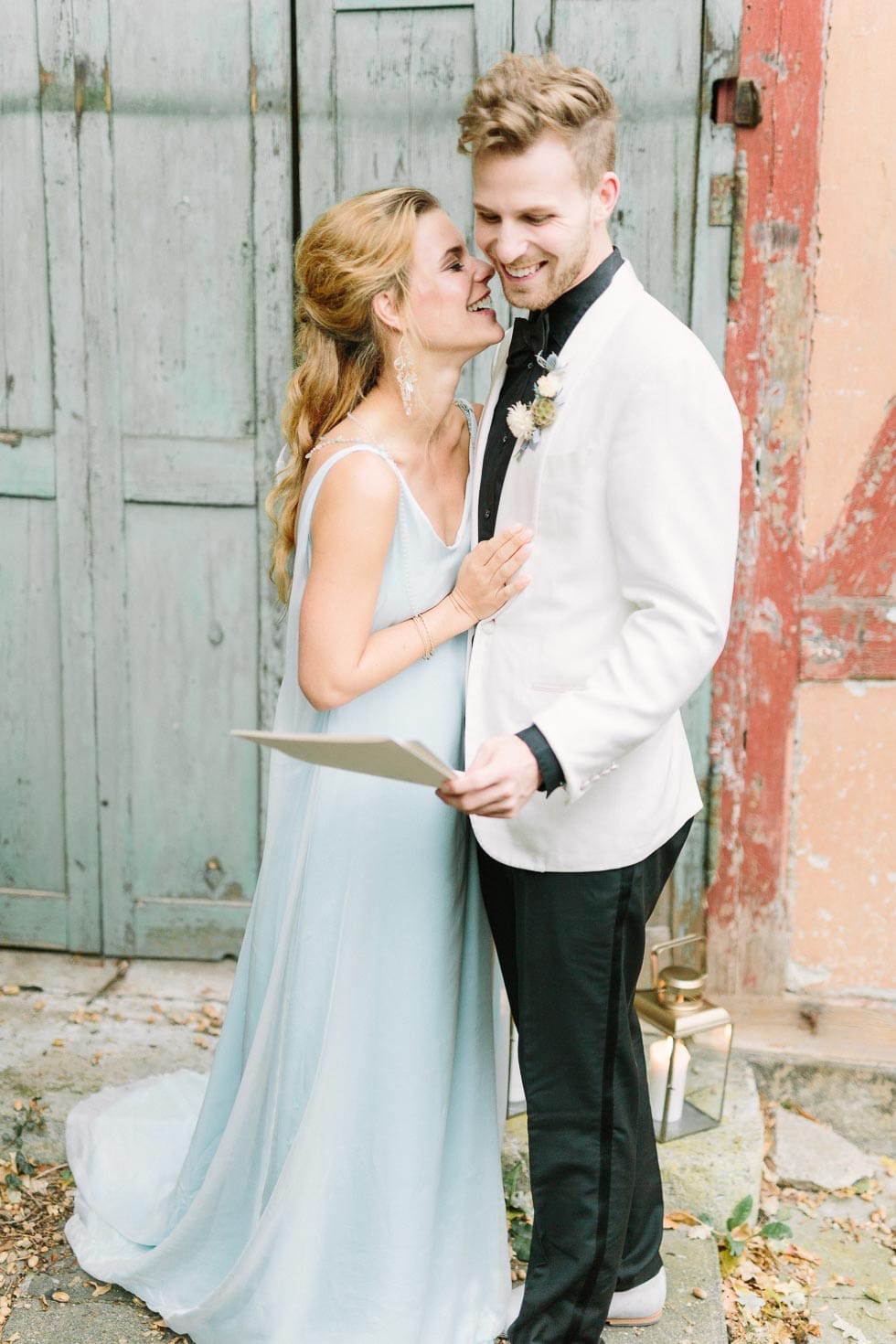 Erst dann öffnet ihr langsam die Tür oder tretet einen Schritt zur Seite, um euch das erste Mal als Braut und Bräutigam zu sehen.
