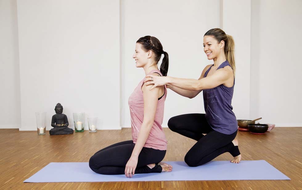 Entspannen und wirken lassen. Zur Entlastung zwischen jeder Übung sollte die „Child-Position“ eingenommen werden. Ihr müsst euch jederzeit in jeder Übungsposition wohlfühlen.