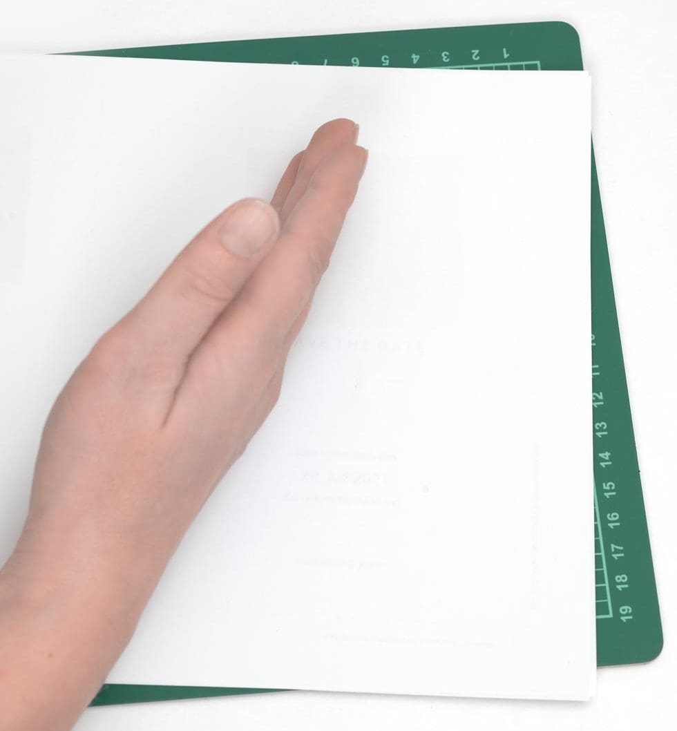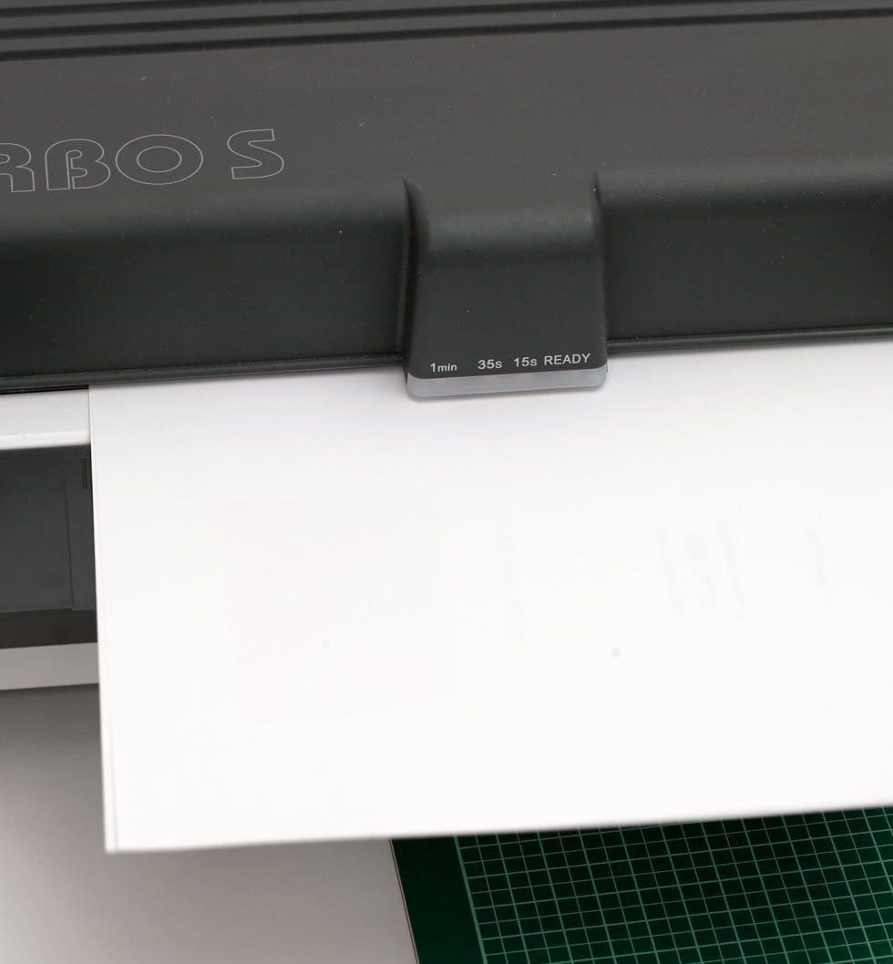 Sollte die Folie – vor allem, wenn ihr viele Karten mit hoher Grammatur am Stück durch das Laminiergerät jagd – Abdrücke auf dem Papier hinterlassen, könnt dies verhindern, indem ihr immer mal wieder das Gerät ausschaltet und abkühlen lasst.