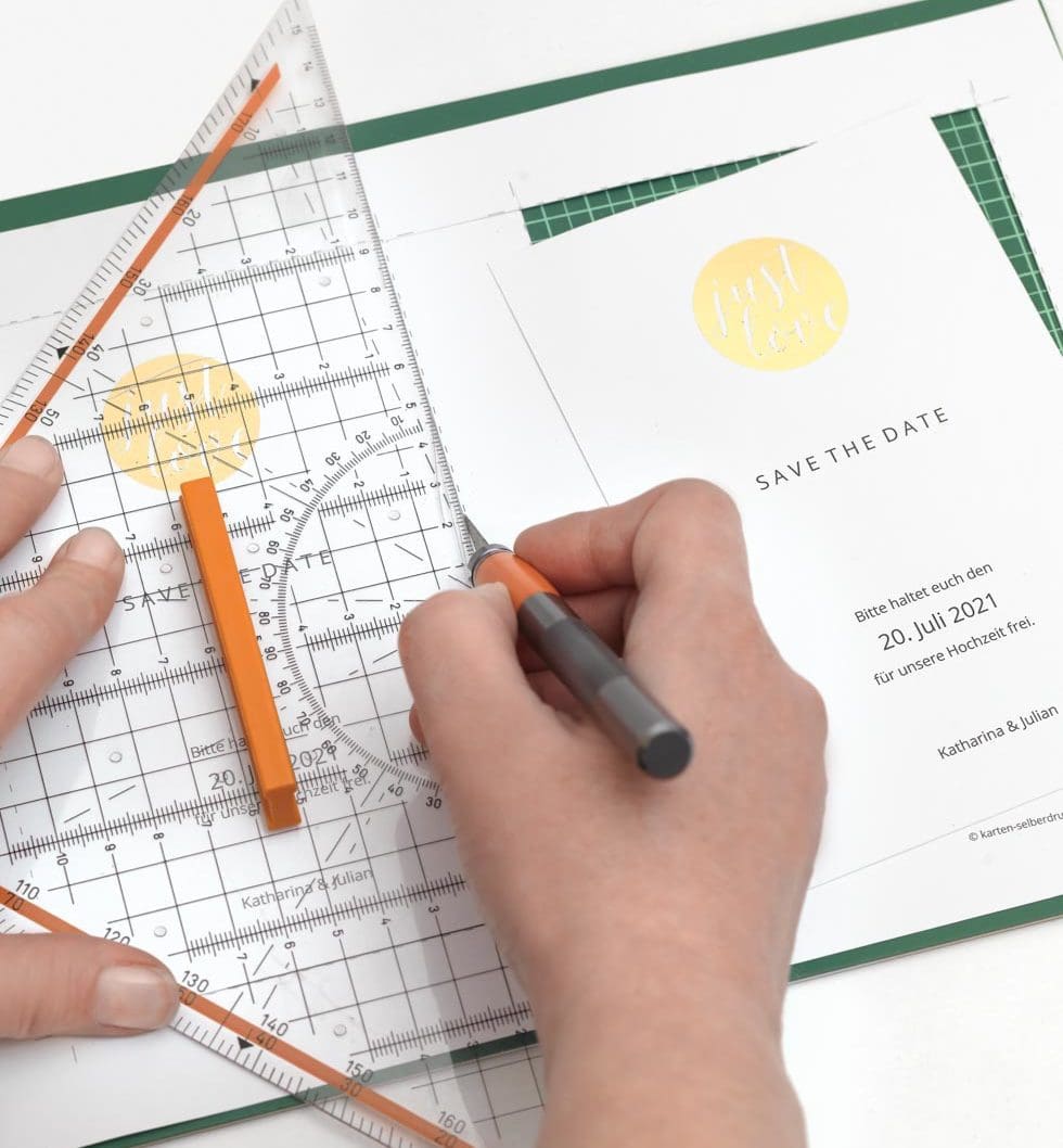 Egal welches Papeterie-Element ihr veredeln möchtet – mit unseren Vorlagen könnt ihr die Basis dafür schnell und einfach selbst gestalten. Denn jede Schrift könnt ihr problemlos auch in Schwarz anlegen und selberdrucken.