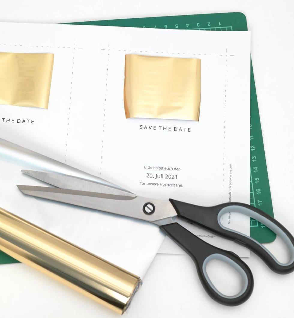 Mit spezieller Folie könnt ihr einfachen schwarzen Laserdrucken den Look von hochwertiger Folienprägung geben und mit die schönsten Papeterie-Elemente selber machen.