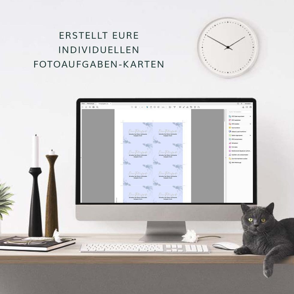 Damit könnt ihr individuell die Fragen und Aufgaben bestimmen und die Karten haben die optimale Größe, um sie neben die Fotos kleben zu können.