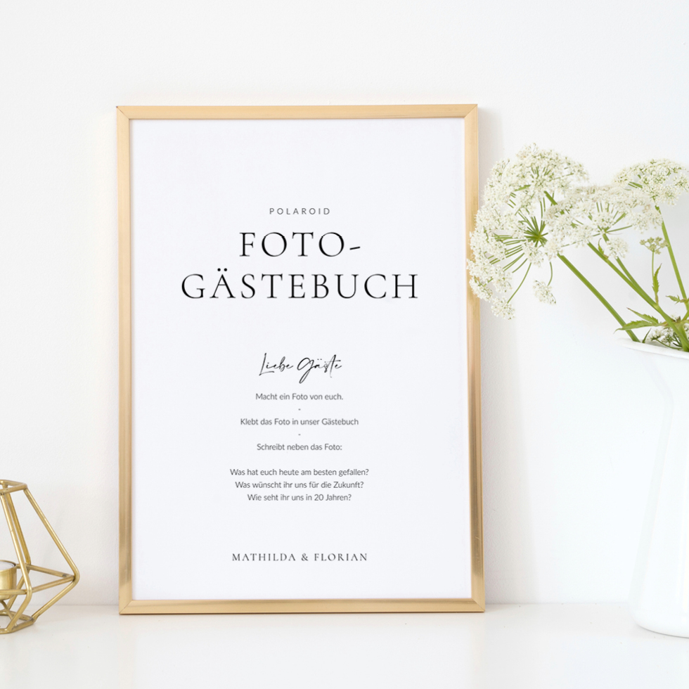 Ein Fotogästebuch ist nicht alltäglich. Deshalb ist es hilfreich, euren Gästen eine kleine individuelle Anleitung zu schreiben, damit sie die Seiten im Buch auch so gestalten, wie ihr es euch wünscht.