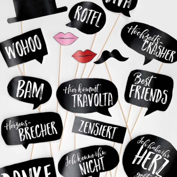 Ob großartige Accessoires und Requisiten, die besten Fotoboxen zum Mieten oder coole Schilder – hier haben wir euch die verschiedensten Ideen zusammengestellt: