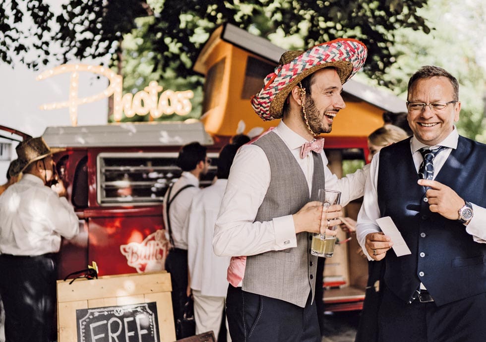 Ein Foto-Bulli ist absolut praktisch, denn er wird einfach angeliefert und ist direkt einsatzbereit. Und vor allem, wenn ihr den Nachmittag im Außenbereich eurer Location verbringen möchtet, bietet sich ein Entertaining mit dem Fotobulli absolut an.