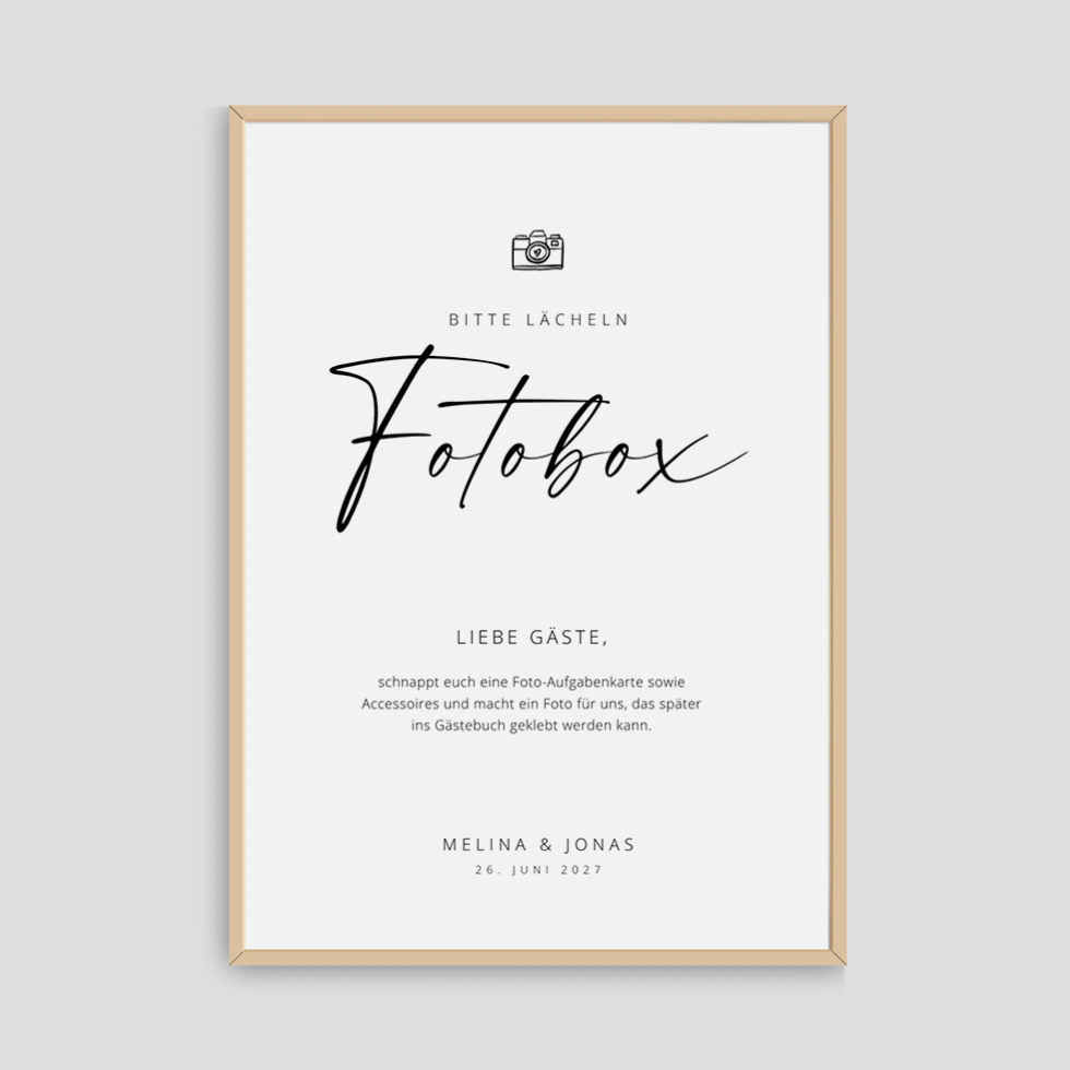 Damit eure Gäste wissen, was zu tun ist, erstellt ihnen ein Schild mit Anweisungen zur Fotobox. Zum Beispiel: