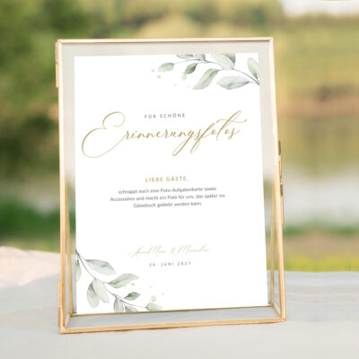 Vor allem wenn ihr Fotoaufgaben für eure Gäste bei der Hochzeit habt oder möchtet, dass eure Fotos ins Gästebuch geklebt werden, hilft ein Schild, das ihnen eine klare Anleitung gibt.