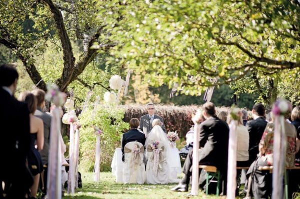 Besonders beliebt ist bei freien Trauungen eine Zeremonie unter freiem Himmel.