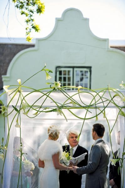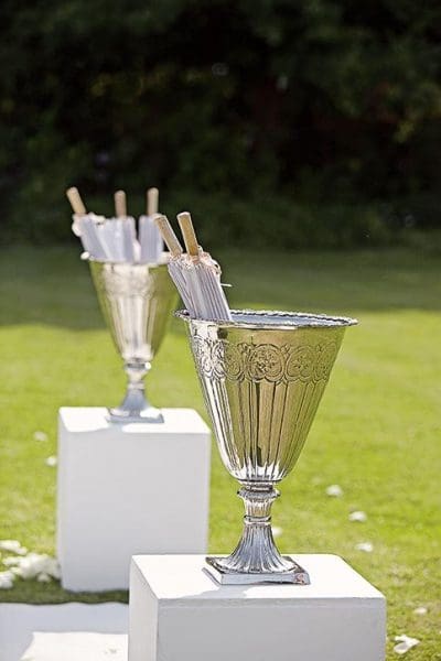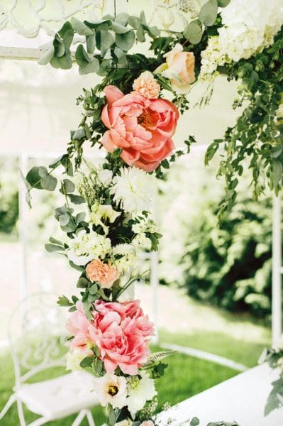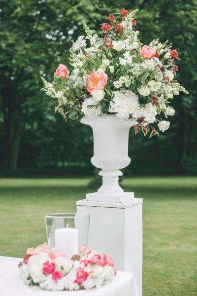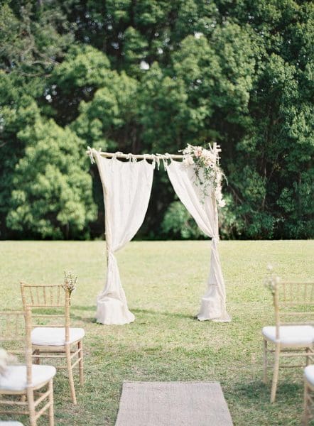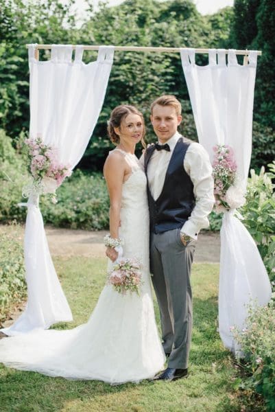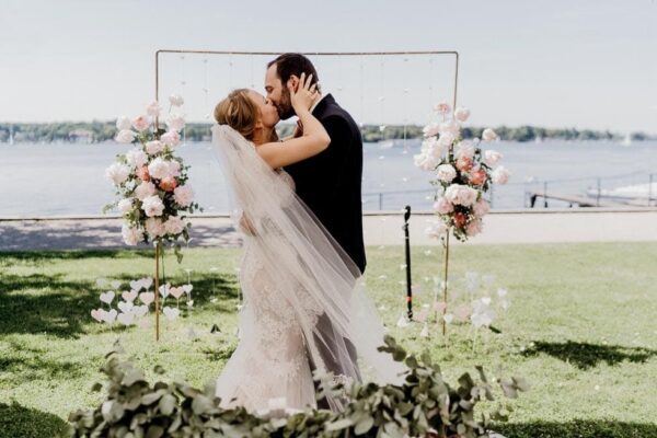 Egal wie ihr euren Traubogen gestalten möchtet – sorgt dafür, dass er fest im Boden verankert ist oder nicht so leicht von einer Windböe umgestoßen werden. Vor allem, wenn ihr am Wasser oder freien Feldern heiratet, ist dies sehr wichtig, weil es dort windiger ist als man meint.