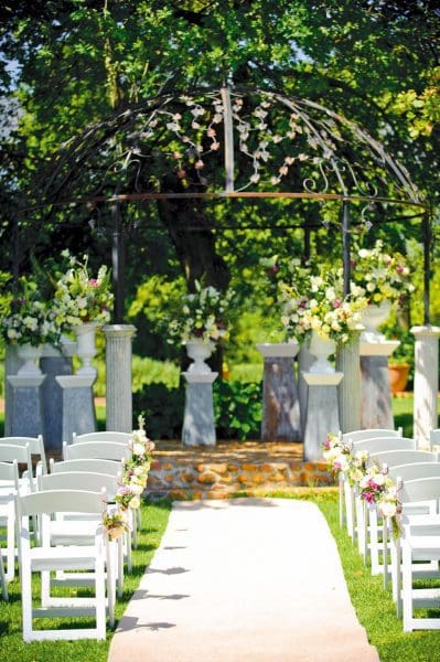 Der Mittelgang ist der Weg zwischen den Stuhlreihen, durch den das Brautpaar zum Trauort einzieht – weshalb ihr ihm auch eine besondere Beachtung schenken solltet.