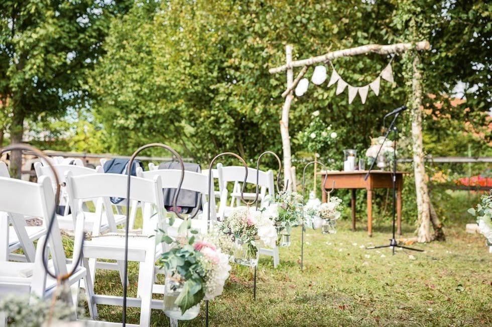 Findet hier tolle Deko Ideen für eure freie Trauung: Von wundervollen Ideen für euren Trauhintergrund über die Gestaltung des Mittelgangs bis hin zu wundervollen Inspiration für die Stühle von Brautpaar und Gästen.