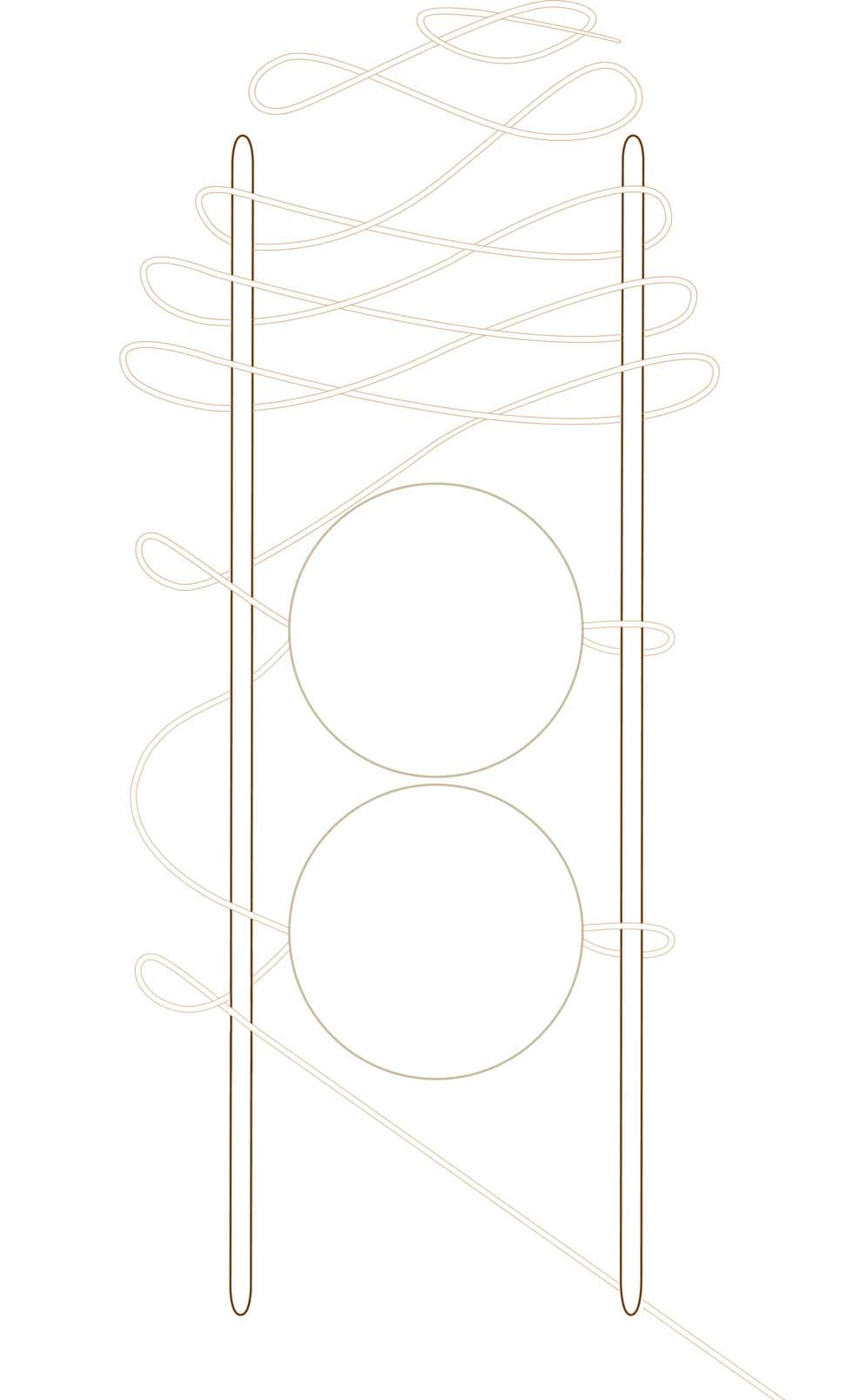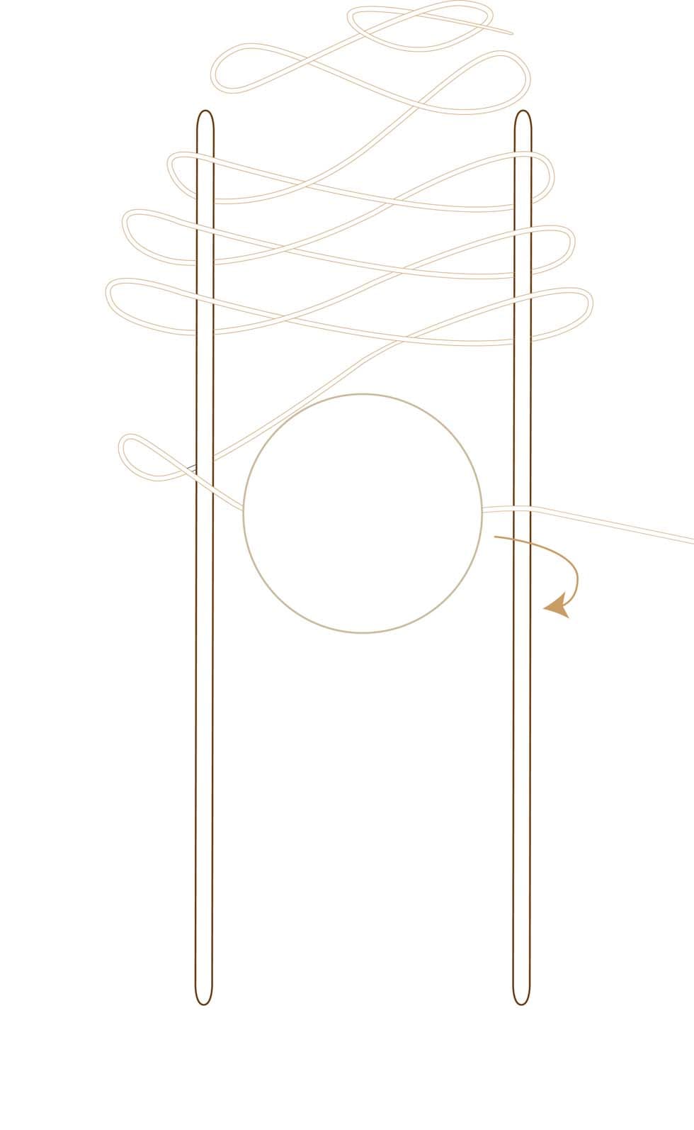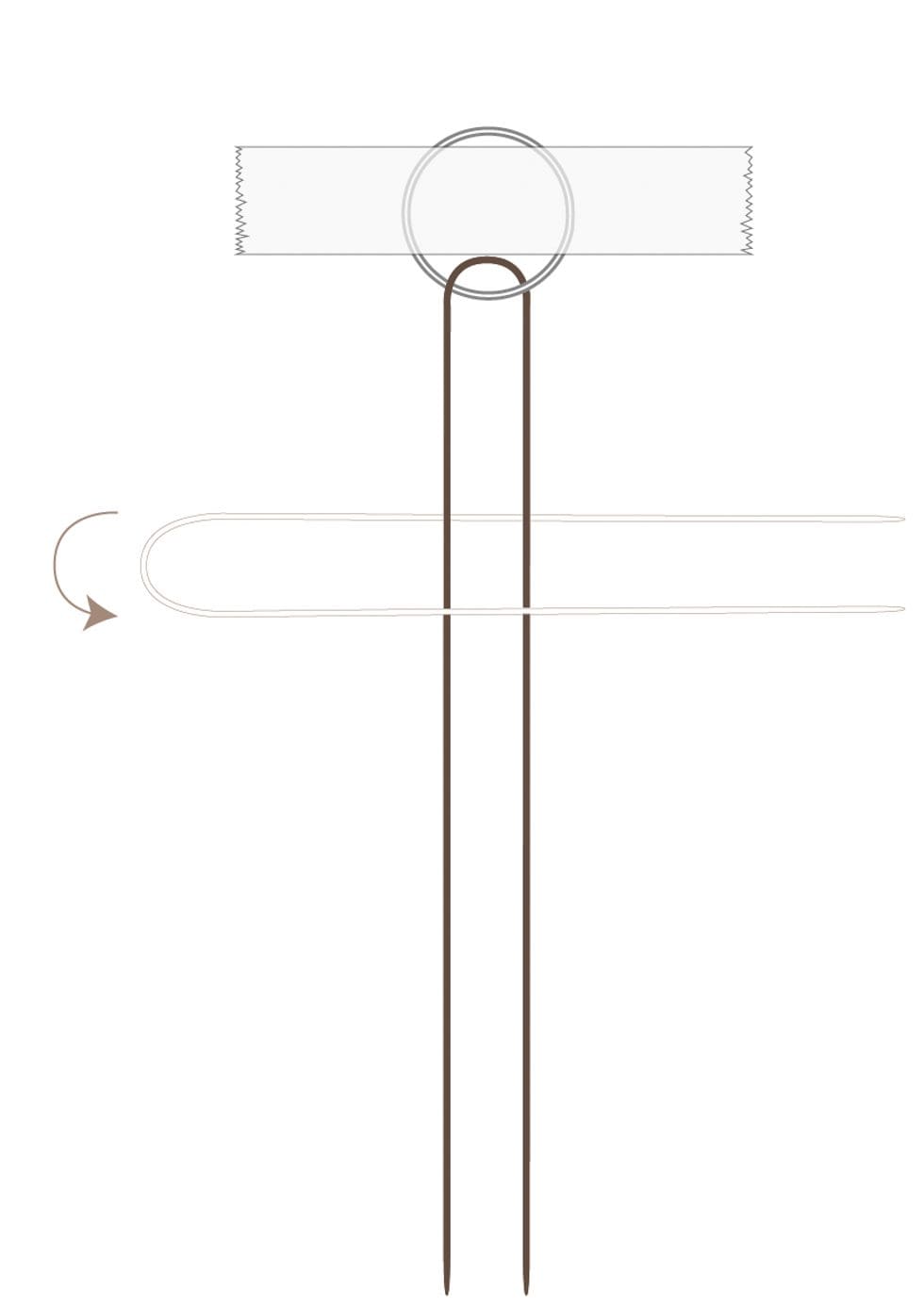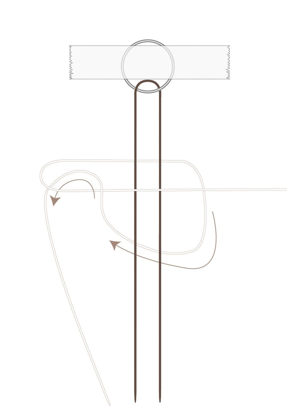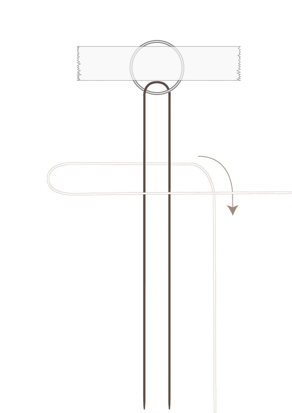 Das Knüpfband wird nun zuerst unter und anschließend über das Basisband geführt.