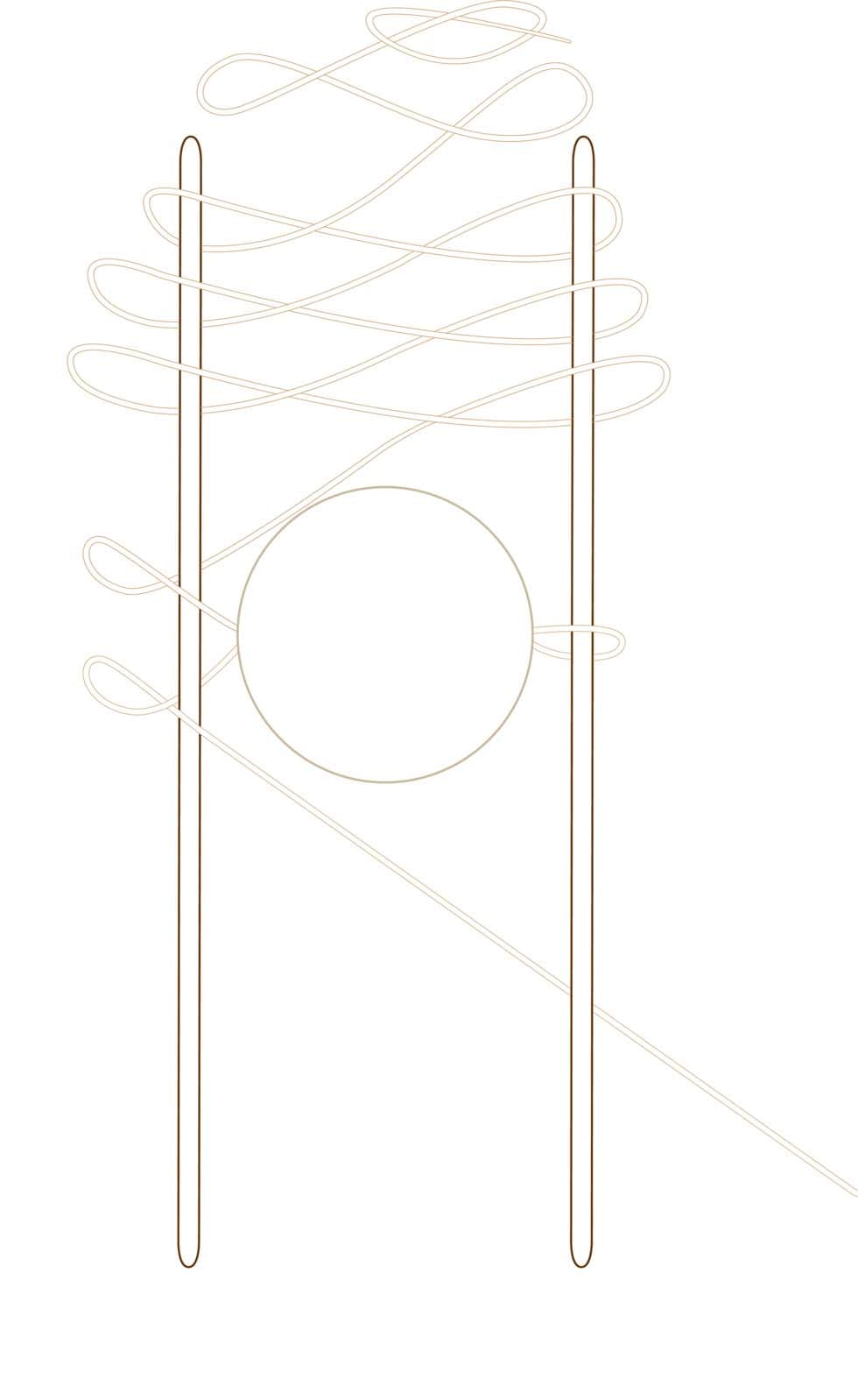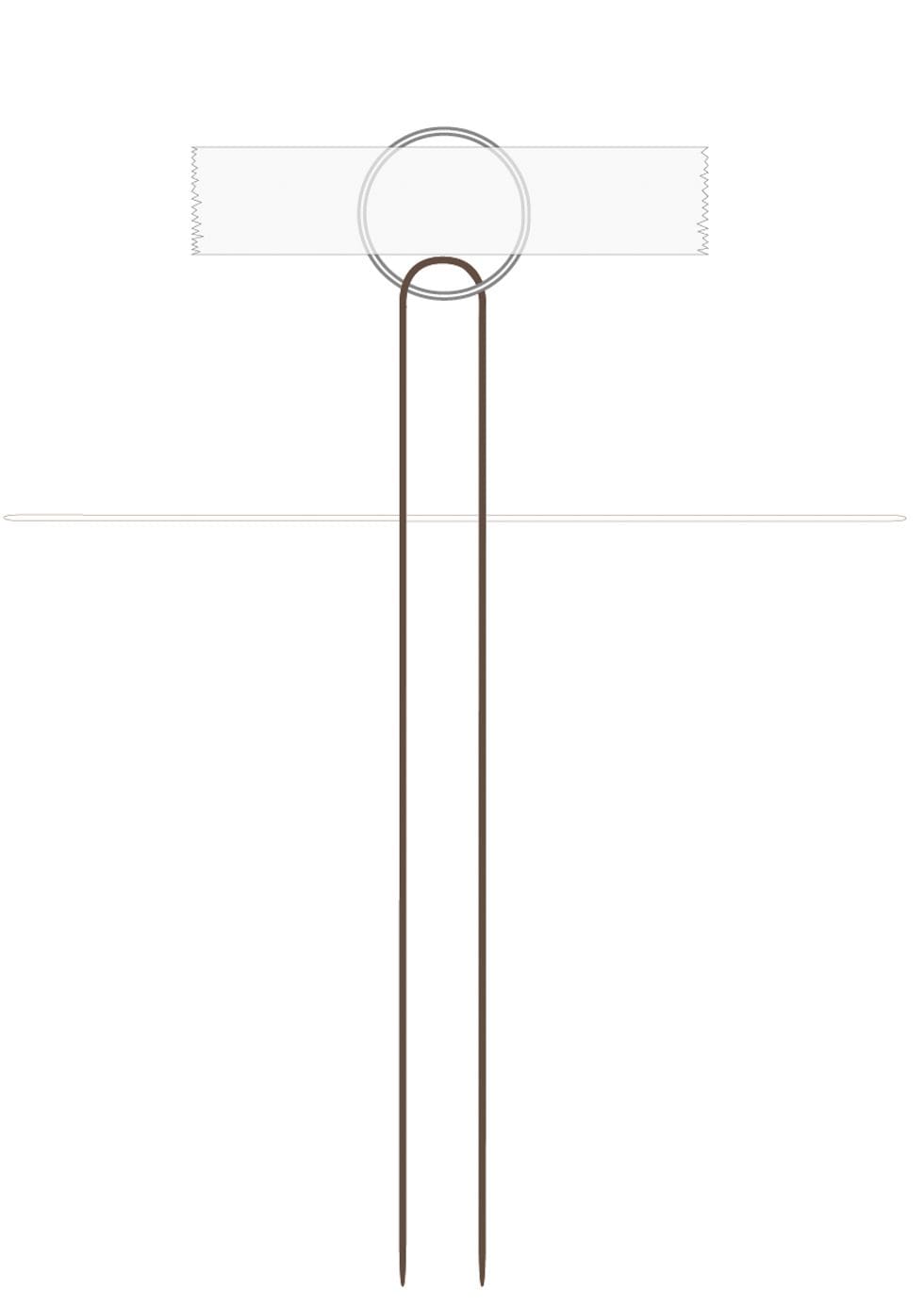 Für einen schönen Abschluss führt die beiden Basisstränge etwa vier Zentimeter vor dem Fertigstellen durch eine Öse und zurück zu der Stelle, an der ihr gerade knüpft.