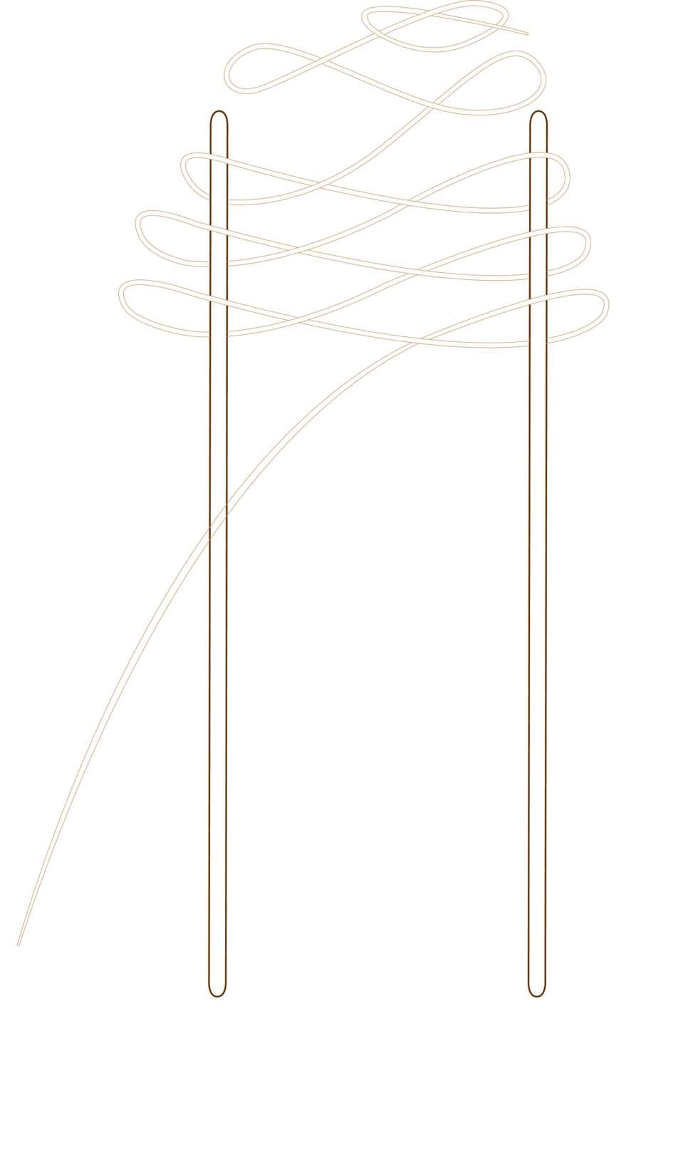 und führt ihn anschließend über den zweiten Strang von links über Kreuz, so dass er über diesem Strang liegt (2).