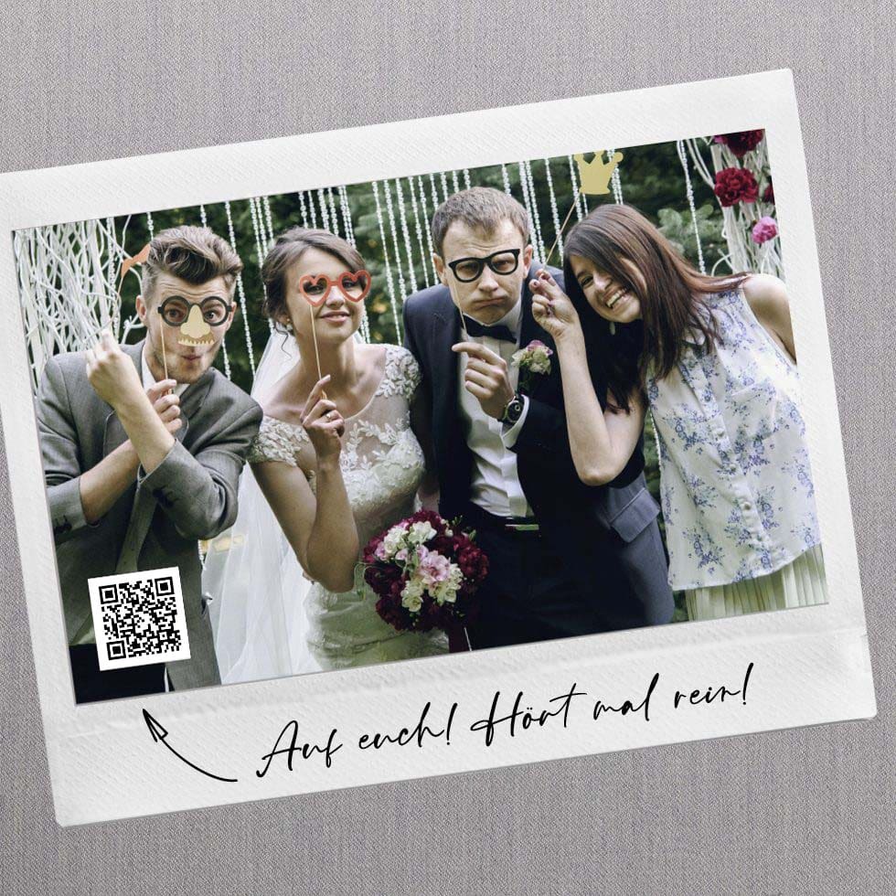 Richtig genial ist es aber auch, euren Gästen mit dem QR-Code den Soundtrack eurer Hochzeit zum Beispiel als Link zu Spotify zu übermitteln.