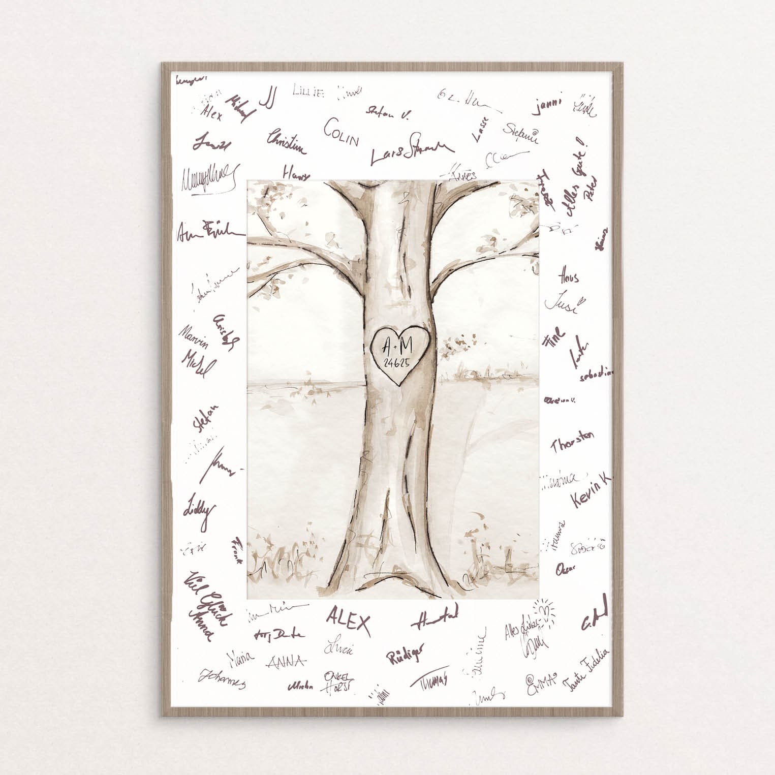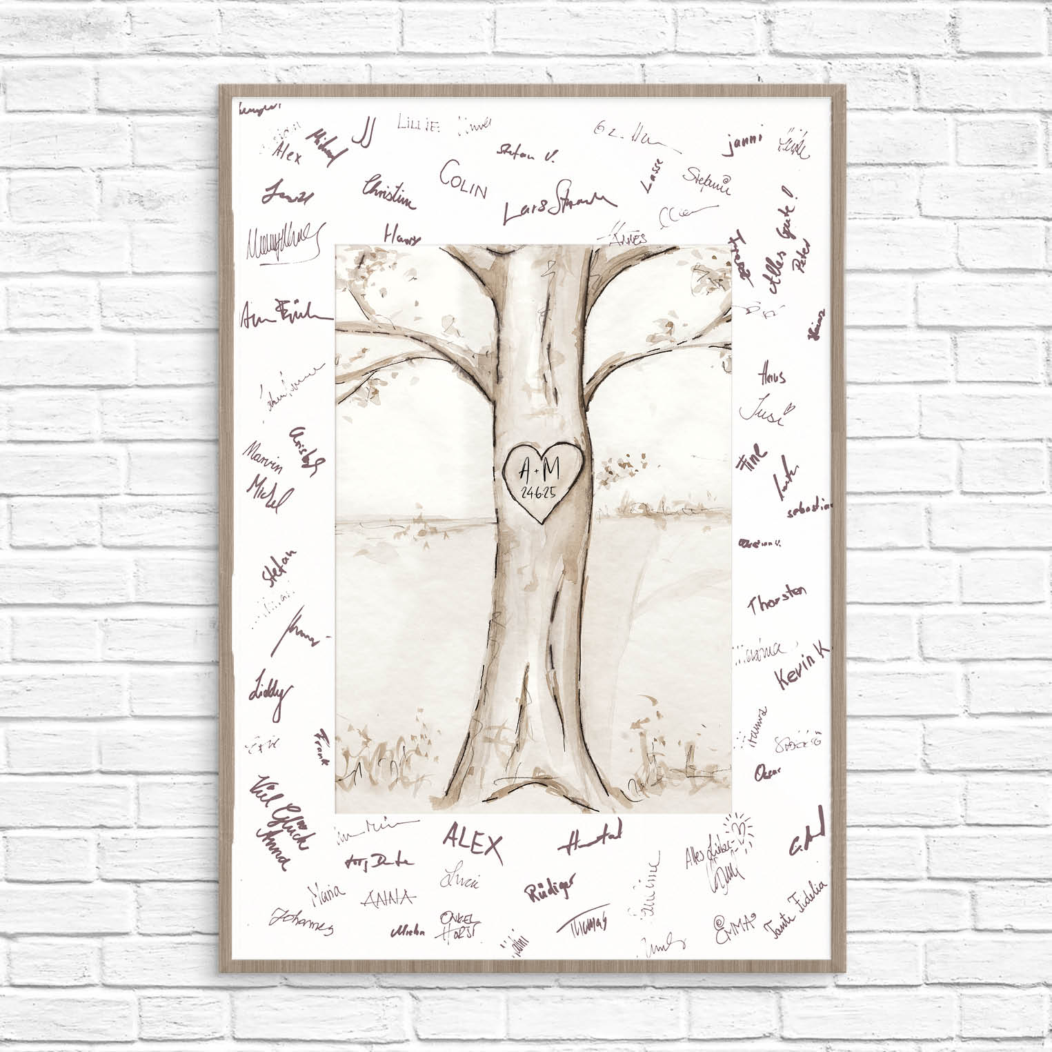 Eure Gäste unterschreiben einfach drumherum und machen es zu einem besonderen Unikat. Dadurch werdet ihr die Bilder garantiert doppelt gerne als Erinnerung an eure Hochzeit und schönes Deko-Objekt zur Erinnerung an diesen Tag an die Wand hängen.